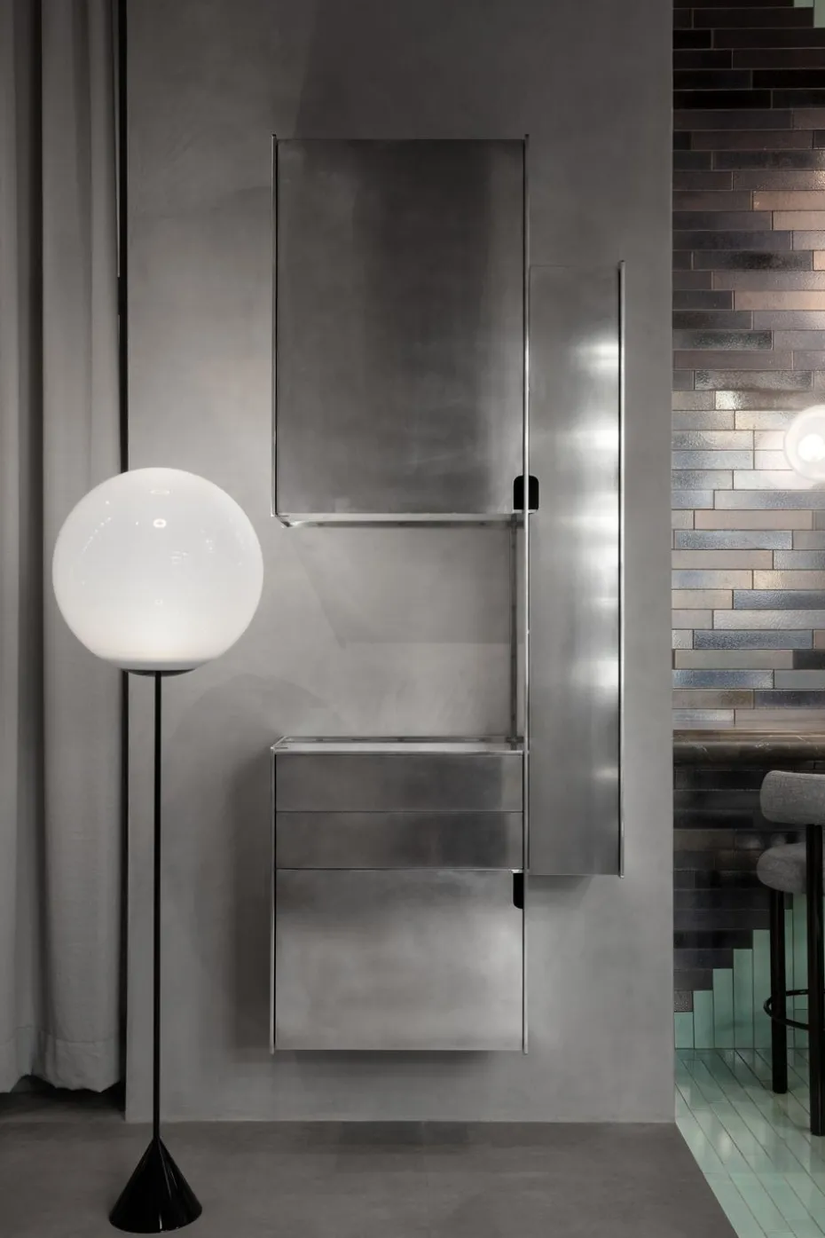 Die Globe Cone slim stehleuchte LED 180 cm von Tom Dixon verzaubert mit ihrer leuchtenden Sphäre. Tagsüber ist sie eine spiegelglänzende Kugel, und wenn sie eingeschaltet wird, offenbart sie ein Spiel innerer Reflexionen von der integrierten LED. Mit ihrer Höhe ist diese Lampe perfekt, um jedem Raum ein einzigartiges Lichterlebnis zu bieten.