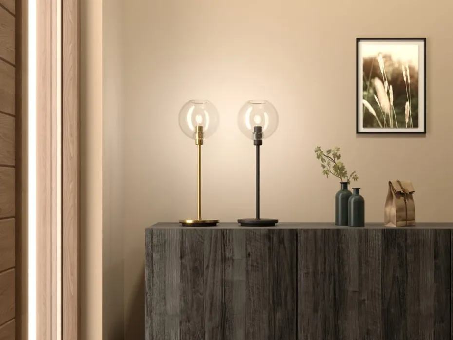 Die Gloria Tischleuchte 46cm von schwedischen Belid ist eine industrielle Tischleuchte mit einer schönen Glaskuppel. Die Lampe vermittelt einen minimalistischen, gleichzeitig aber auch exklusiven Eindruck und verbreitet ein herrliches Licht im Raum.