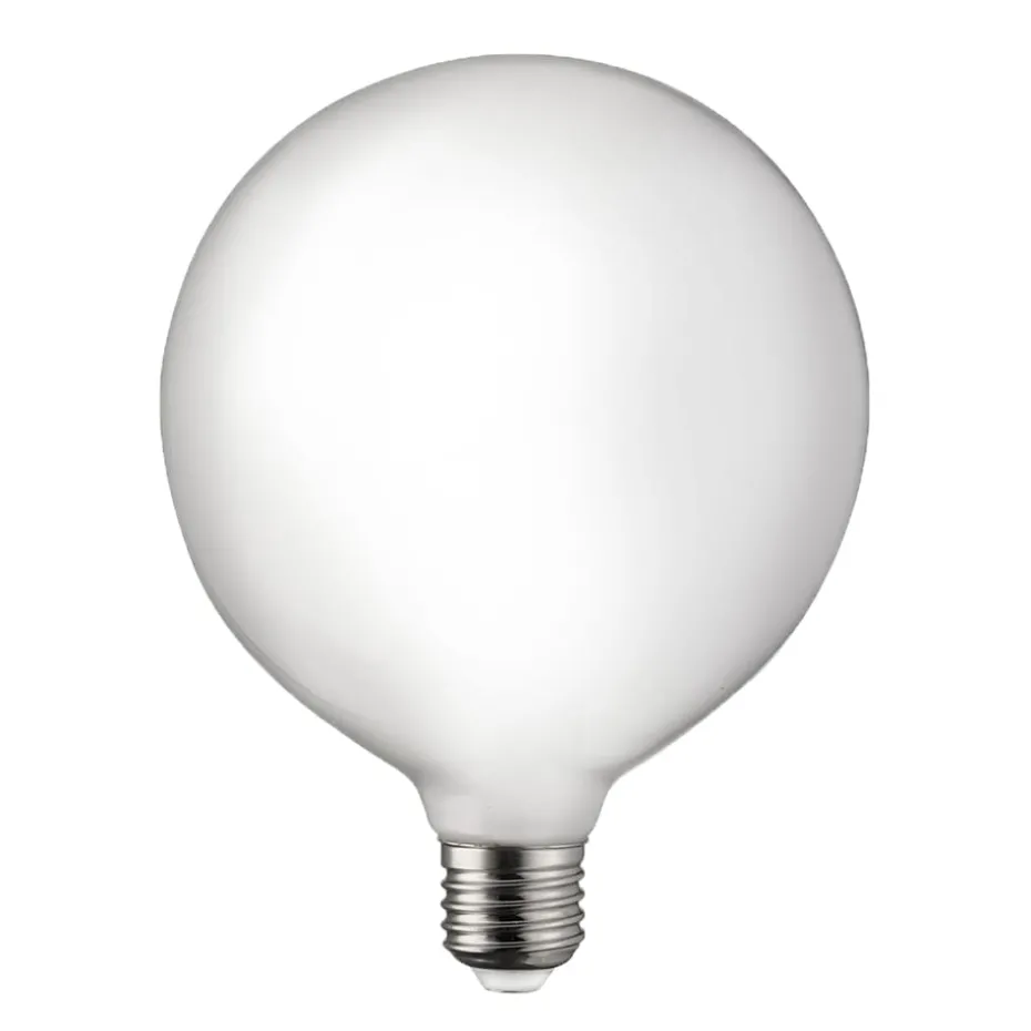 Die Glühbirne E27 LED globe 125 der schwedischen Marke Globen Lighting ist eine hervorragende Ergänzung zu den Leuchten der Marke. Diese große, kugelförmige Lichtquelle gibt ein warmweißes Licht ab und kann in drei verschiedenen Schritten gedimmt werden. Sie besteht aus klarem Glas mit sichtbaren LED-Filamenten, die wunderbar dekorativ sind.