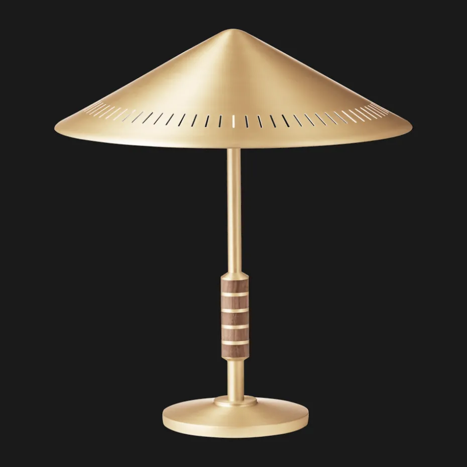 Die Governor 405 Tischleuchte ist aus massivem Messing und Walnuss gefertigt, was ihr ein anspruchsvolles Gefühl verleiht. Sie spendet ein angenehmes, funktionales nach unten gerichtetes Licht und eine warme, dekorative Beleuchtung durch den perforierten Messingschirm. Diese Lampe, entworfen vom Architekten Bent Karlby im Jahr 1956, ist eine perfekte Kombination aus praktischer Beleuchtung und elegantem Design.