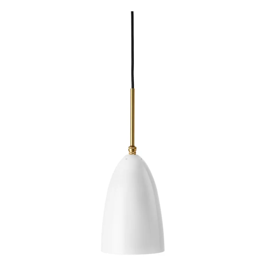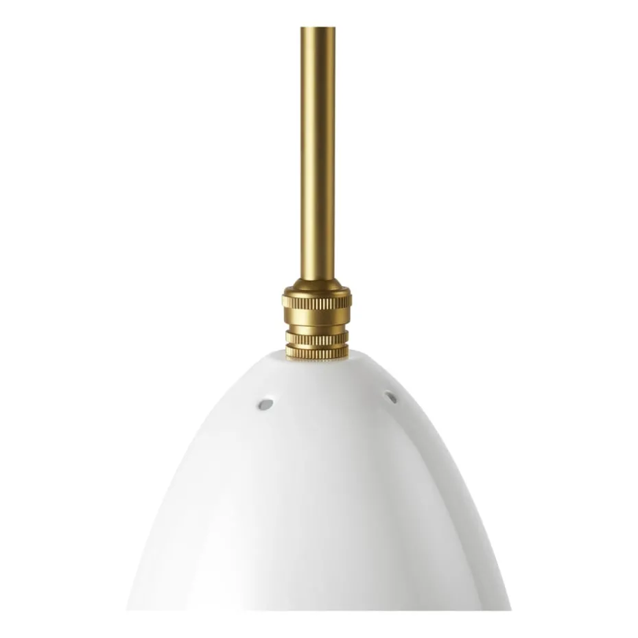 Die Gräshoppa Deckenleuchte poliert von Gubi ist eine Variante der klassischen Stehleuchte mit dem gleichen Namen, die 1947 von Greta M. Grossman entworfen wurde. Diese Pendelleuchte hat die gleiche klassische Form des Schirms und einen schlichten und eleganten Ausdruck.