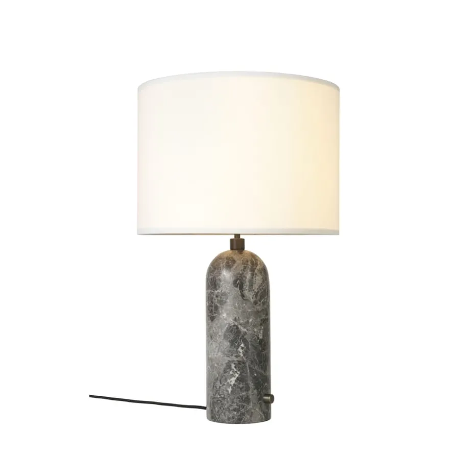 Die Tischleuchte Gravity L, herausgegeben von Space Copenhagen für Gubi, überzeugt durch ihre schlichte Eleganz. Sie hat einen zylinderförmigen Fuß und einen leichten, stilvollen weißen Lampenschirm. Die Verwendung dieser unterschiedlichen Materialien verleiht der Leuchte einen ausbalancierten Kontrast zwischen schwer und leicht, was der Leuchte letztendlich auch ihren Namen verliehen hat – und das Resultat ist perfekt! Dank ihres stilvollen Designs passt sie in so gut wie alle Umgebungen und erfreut mit schöner, warmer Beleuchtung. Diese Tischlampe ist auch als kleineres Modell erhältlich.