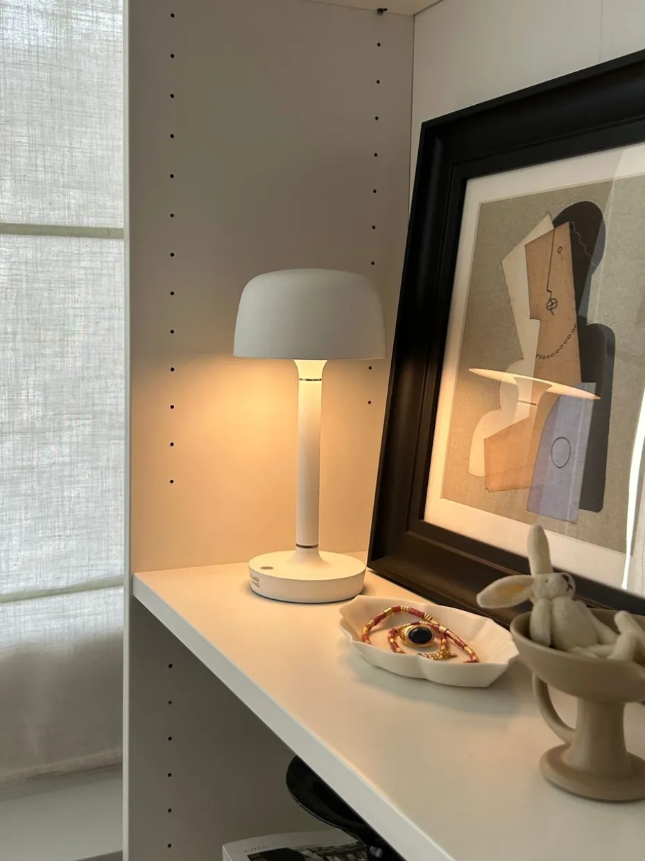 Die Halo portable Tischleuchte 25,5 cm ist eine Leuchte, die vom klaren Licht eines Heiligenscheins inspiriert ist und mit ihrem markanten Zentrum das Licht auf das Bedeutendste richtet. Mit ihrem zeitlosen Design passt sie in die meisten Umgebungen, sei es als Detail auf dem Beistelltisch oder auf Ihrer Terrasse. Die Tischleuchte ist dimmbar und kann zwischen stimmungsvollem Licht und funktionaler Beleuchtung umgeschaltet werden.
