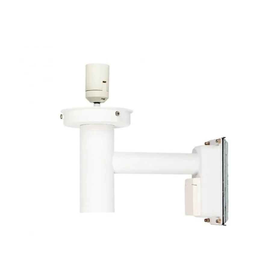Wandhalterung mit E27-Sockel aus chromatiertem und pulverbeschichtetem Metall mit geerdeter Steckdose. Empfohlen für Globus 250 mm, passt aber auch für 200 mm und 300 mm