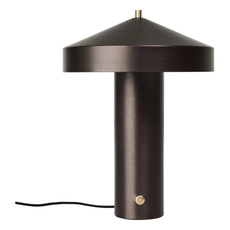 Die Hatto Tischleuchte von OYOY ist eine minimalistische Lampe aus Metall. Hatto bedeutet Hut auf Japanisch, was sich auf die Form des Lampenschirms bezieht.