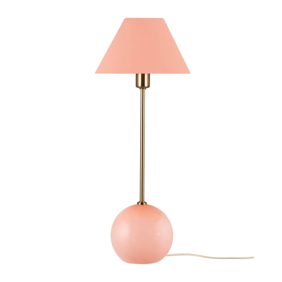 Die Iris 20 Tischleuchte von Globen Lighting ist eine charmante Lichtquelle, die an einen süßen Karamell erinnert. Entworfen von Erika Norén, hat die Lampe einen kugelförmigen Fuß aus durchgefärbtem Glas mit eingeblasenen Blasen und einen passenden Baumwollschirm. Perfekt, um in einem Fenster oder auf einem Beistelltisch platziert zu werden.