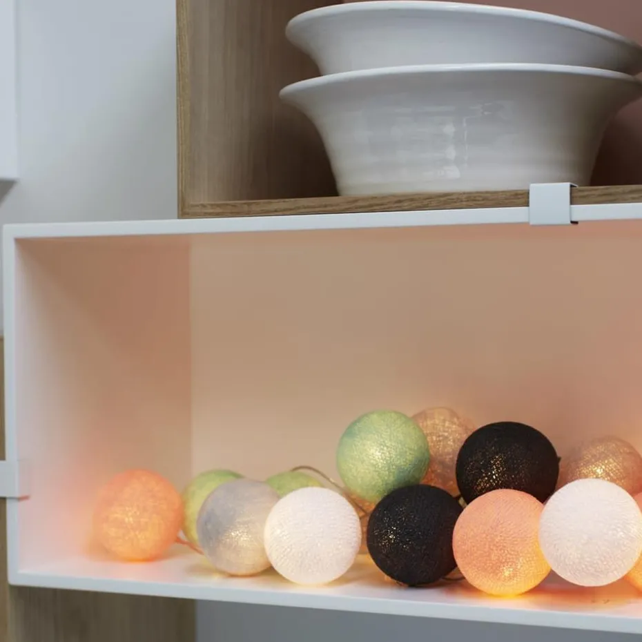 Die Irislights in der Variante "Endless Summer" sind dekorative Lichterkugeln aus Baumwolle, die in verschiedenen Pastelltönen erleuchten. Diese schönen Lichterketten sind mit 20 oder 35 leuchtenden Kugeln bestellbar, und machen sich besonders gut am Fensterbrett, auf Regalen, oder als besonders stylische Deko an der Wand.
