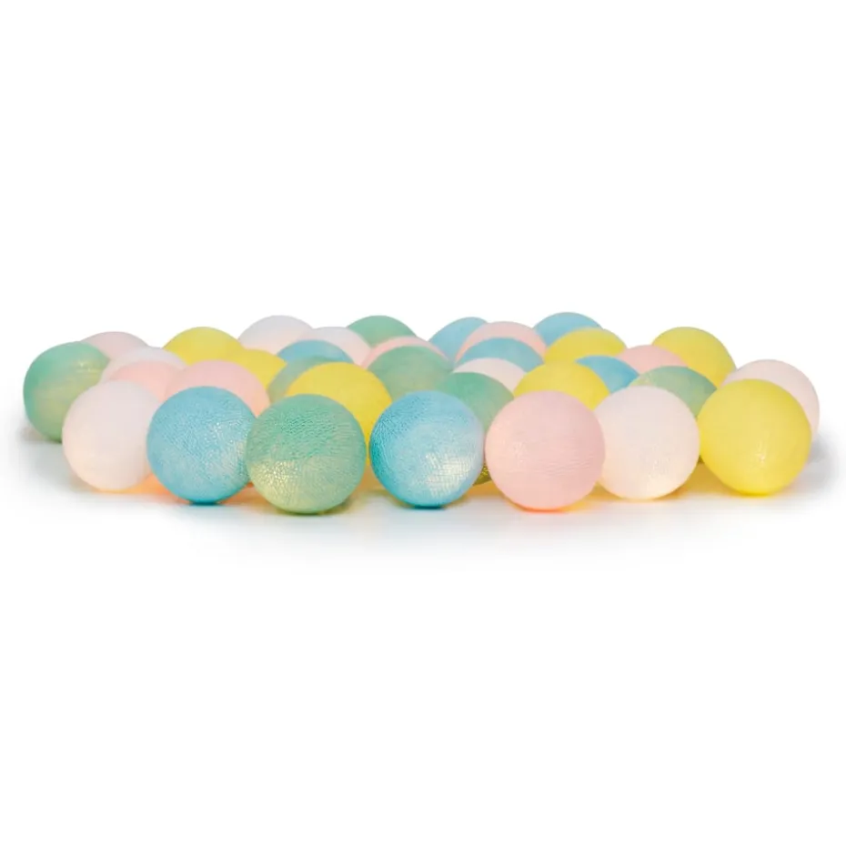 Die Irislights in der Variante "Fairytale" sind dekorative Lichterkugeln aus Baumwolle, die in märchenhaften Pastelltönen erleuchten. Diese schönen Lichterketten sind mit 20 oder 35 leuchtenden Kugeln bestellbar, und machen sich besonders gut am Fensterbrett, auf Regalen, oder als besonders stylische Deko an der Wand.