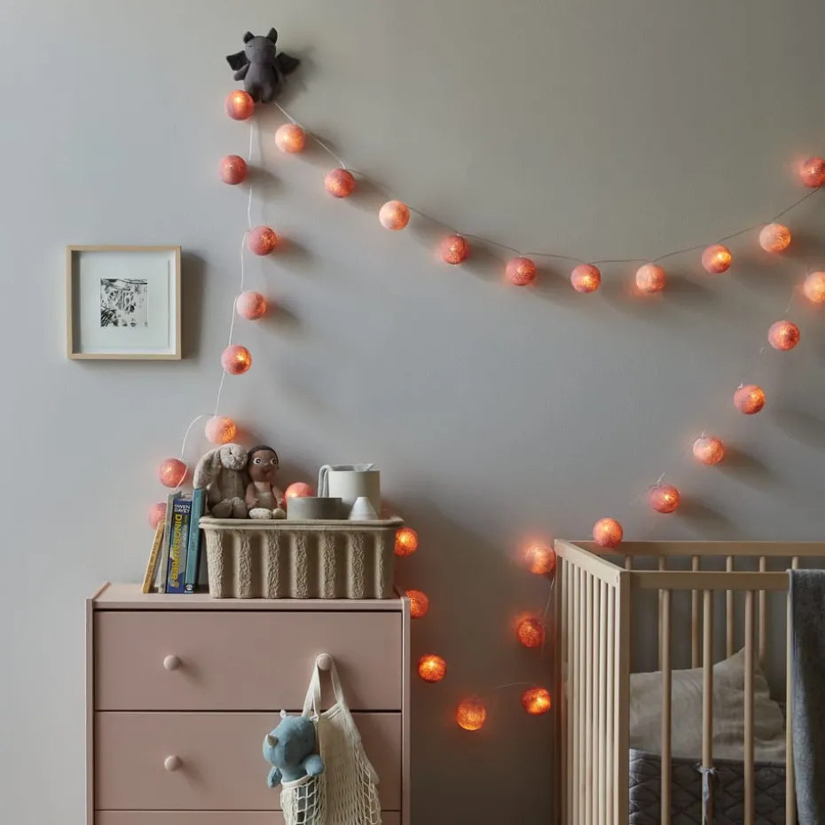 Die Lichterkette Irislights French rosa verbreitet eine romantische Stimmung mit ihren zwei Rosatönen und gemütlich, warmem Schein. Die Bälle sind handgefertigt aus Baumwolle, umweltfreundlichem Kleber und dünnem, handgefärbtem Faden. Hängen Sie sie um einen Spiegel, dekorieren Sie den Esstisch oder formen Sie die Lichterkette zu einem Herz und befestigen Sie sie an der Wand. Die Irislights French rosa wird Licht verbreiten und ein warmes Gefühl erzeugen, egal in welchem Raum Sie sie aufhängen.