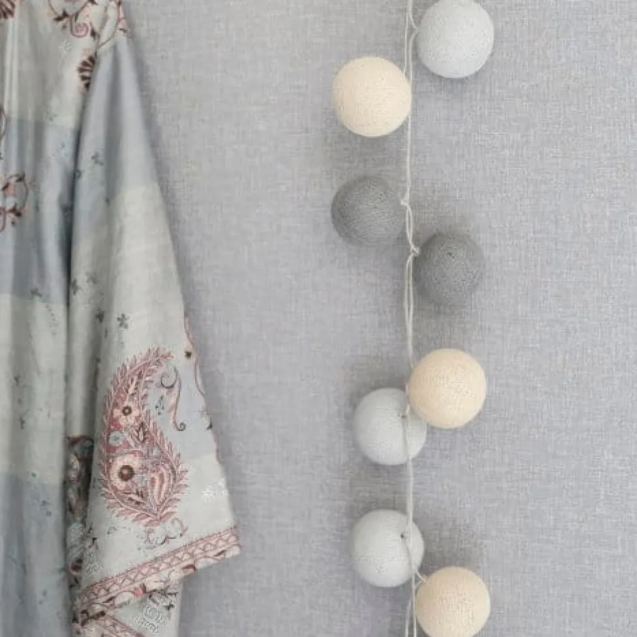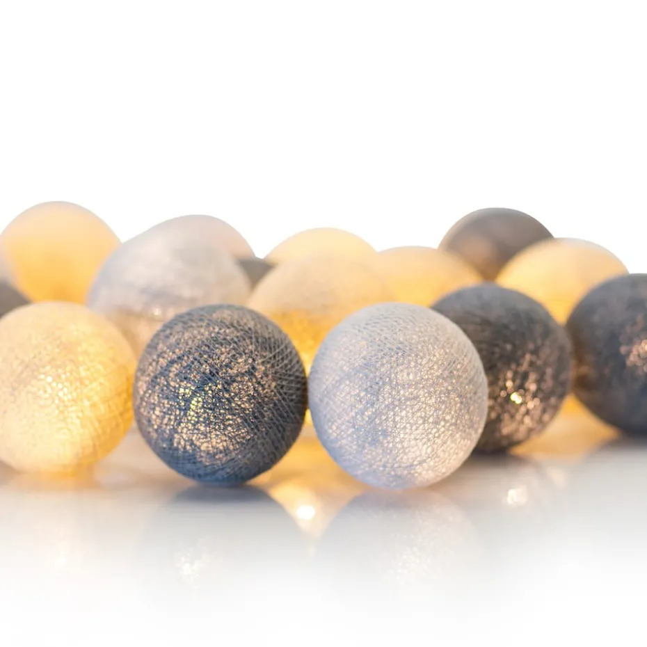 Die trendigen Irislights in der Variante „Greige“ sind dekorative Lichterkugeln aus Baumwolle, die in weißen, gelben und grauen Farbtönen erleuchten. Diese schönen Lichterketten sind mit 20 oder 35 leuchtenden Kugeln bestellbar, und machen sich besonders gut am Fensterbrett, auf Regalen, oder als besonders stylische Deko an der Wand.