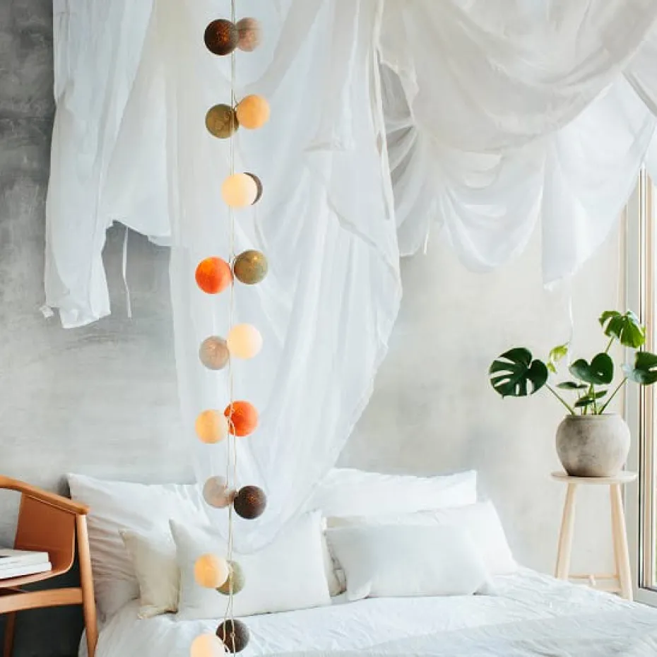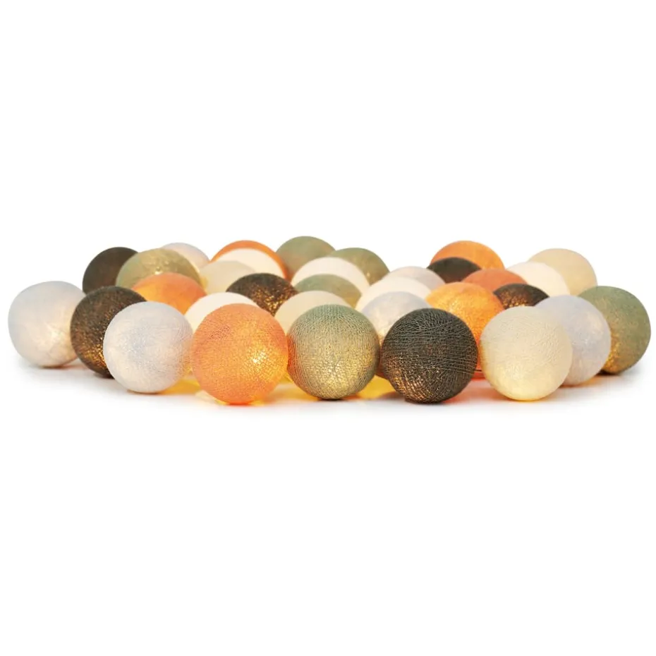 Die Irislights in der Variante "Morning Mist" sind dekorative Lichterkugeln aus Baumwolle, die mit erdnahen Farbtönen erleuchten. Diese schönen Lichterketten sind mit 20 oder 35 leuchtenden Kugeln bestellbar, und machen sich besonders gut am Fensterbrett, auf Regalen, oder als besonders stylische Deko an der Wand.