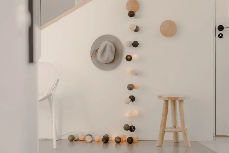 Die Irislights Shades ist eine Lichterkette bestehend aus runden Kugeln, die aus einem dünnen Faden, der von Hand in einer weichen und neutralen Farbskala eingefärbt wurde, hergestellt werden. Die Kugeln werden einfach in der gewünschten Reihenfolge über die Lichter der Lichterkette befestigt und können dann als dekoratives Detail in einem Fenster oder als stimmungsvolle Beleuchtung in einem Korb im Kinderzimmer verwendet werden.