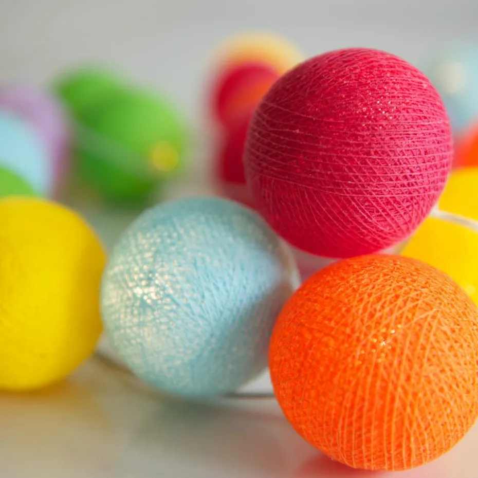 Die Irislights in der Variante "Tivoli" sind dekorative Lichterkugeln aus Baumwolle, die in bunten Farbtönen erleuchten. Diese schönen Lichterketten sind mit 20 oder 35 leuchtenden Kugeln bestellbar, und machen sich besonders gut am Fensterbrett, auf Regalen, oder als besonders stylische Deko an der Wand.