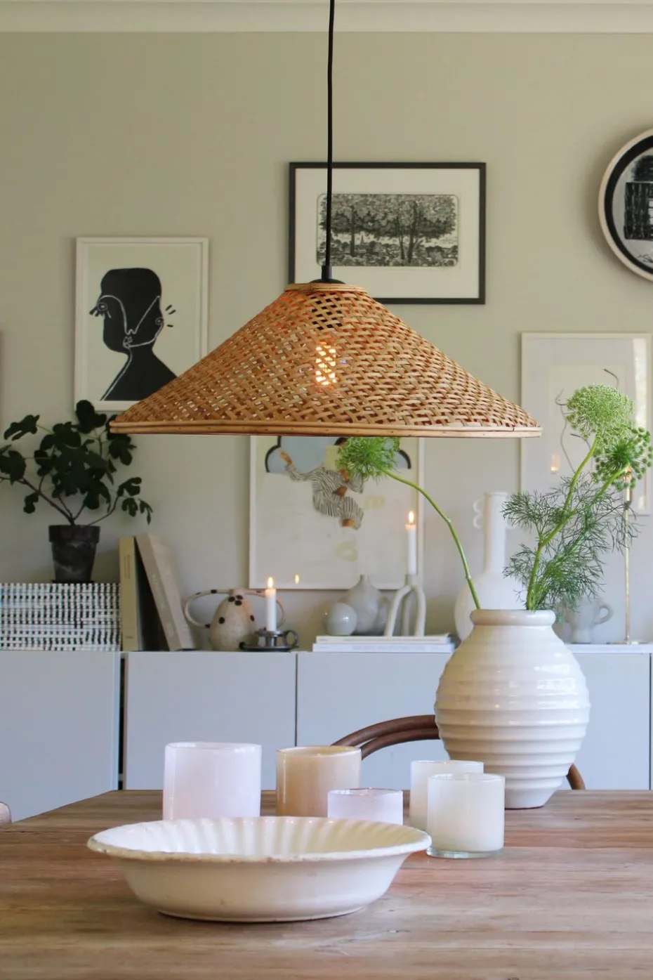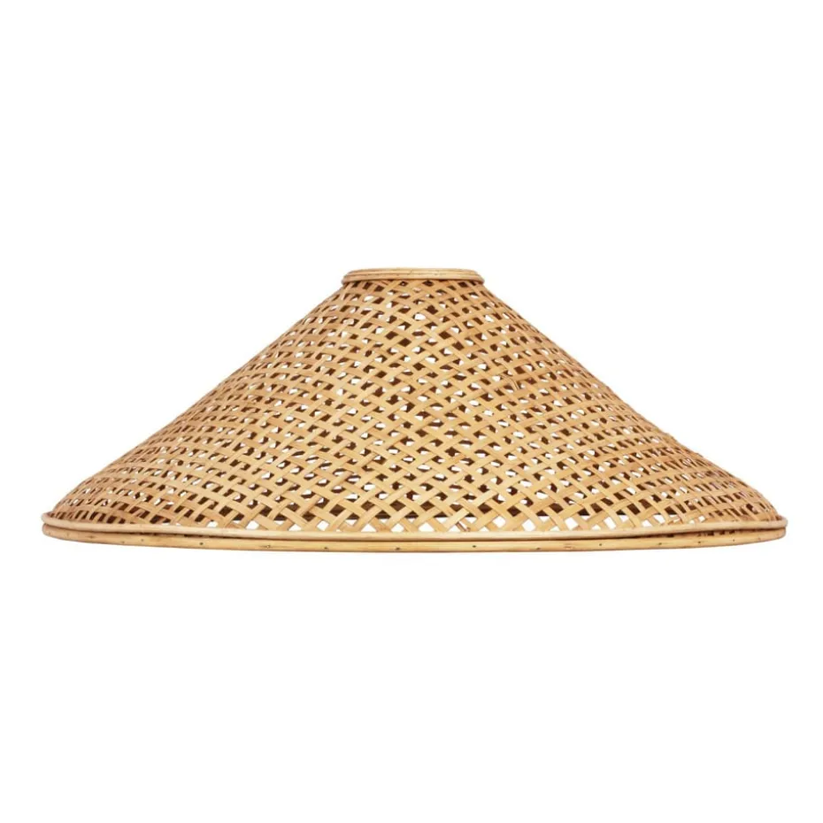 Der Jakarta Lampenschirm Ø 55 cm von schwedischem Globen Lighting ist ein konischer Schirm, der das Licht schön im Raum verteilt durch das naturfarbene Rattan, aus dem die Lampe gefertigt ist.