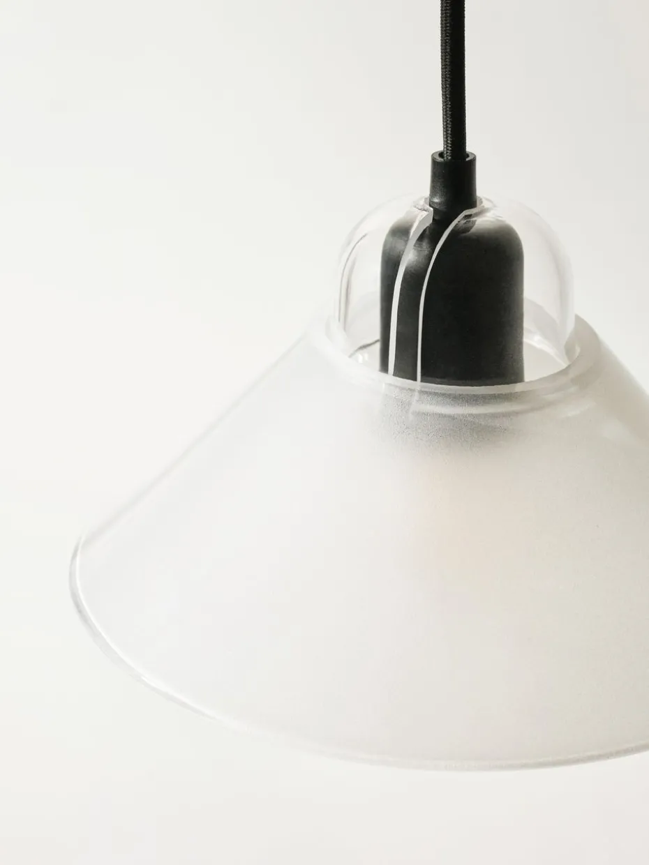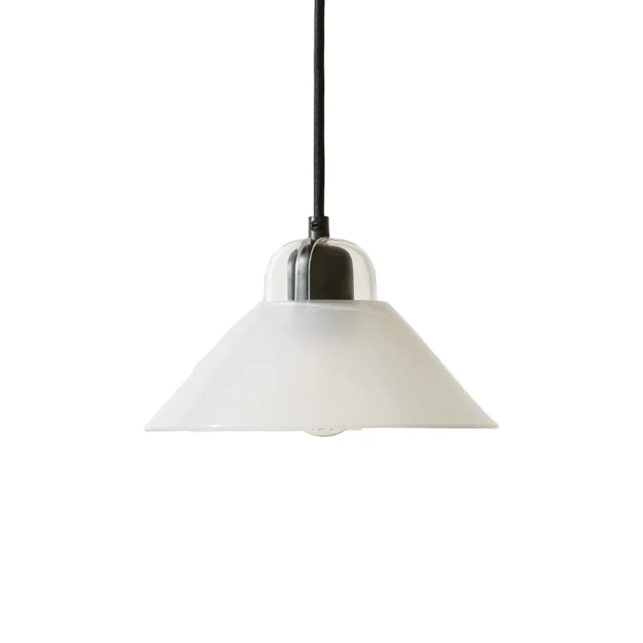 Die Kalo Pendelleuchte von Design House Stockholm, entworfen von Axel Bjurström, ist eine elegante Interpretation der klassischen Form der Schuhmacherlampe. Hergestellt aus frostedem und bemaltem Glas, bietet diese Leuchte eine sanfte, nach unten gerichtete Beleuchtung, die ein Spiel aus Licht und Schatten erzeugt. Der Lampenschirm kann zur Reinigung oder zum Austausch der Lichtquelle einfach horizontal herausgeschoben werden. Die Kalo Pendelleuchte ist perfekt für sowohl Arbeit als auch Freizeit und schafft eine warme und einladende Atmosphäre, egal ob sie alleine oder in der Gruppe verwendet wird.