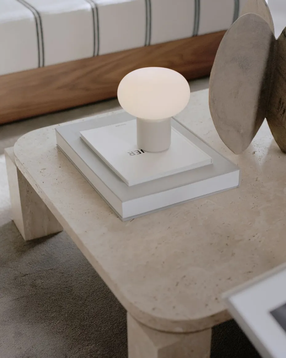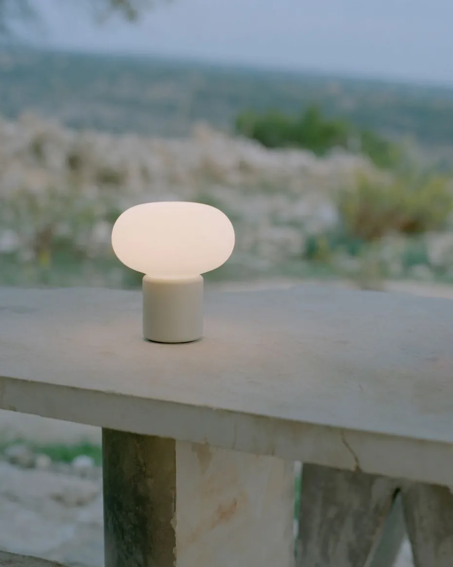 Die Karl-Johan Tischleuchte tragbar von New Works hat ein weiches elegantes Design und wie der Name schon sagt, hat sich die dänische Designerin Signe Hytte von der organischen Form des Pilzes inspirieren lassen. Die Tischleuchte steht auf einem kleinen zylinderförmigen Lampenfuß und endet oben mit einem sanft geformten Lampenschirm. Dank des tragbaren Designs der Lampe lässt sie sich leicht zwischen den verschiedenen Räumen des Hauses bewegen. Die Lampe ist aus ABS und Polyethylen gefertigt und verfügt über einen schönen Schirm, der ein angenehmes Licht im Raum verbreitet.