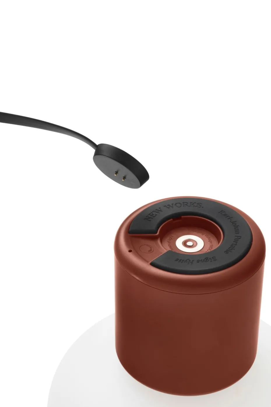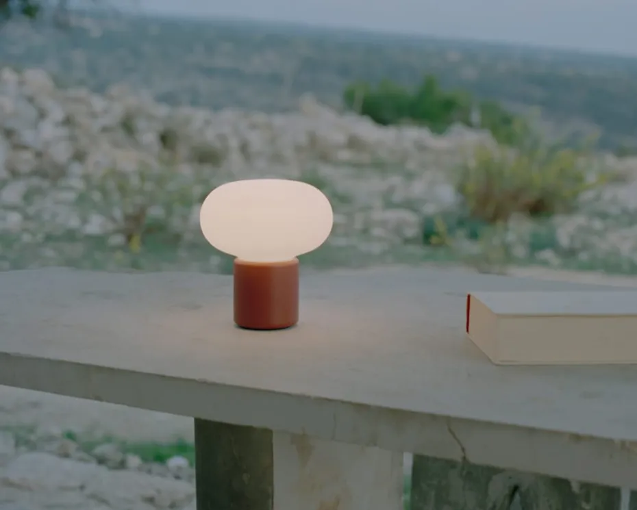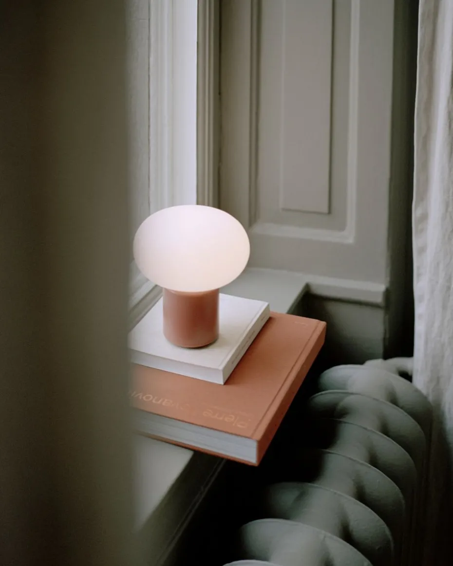 Die Karl-Johan Tischleuchte tragbar von New Works hat ein weiches elegantes Design und wie der Name schon sagt, hat sich die dänische Designerin Signe Hytte von der organischen Form des Pilzes inspirieren lassen. Die Tischleuchte steht auf einem kleinen zylinderförmigen Lampenfuß und endet oben mit einem sanft geformten Lampenschirm. Dank des tragbaren Designs der Lampe lässt sie sich leicht zwischen den verschiedenen Räumen des Hauses bewegen. Die Lampe ist aus ABS und Polyethylen gefertigt und verfügt über einen schönen Schirm, der ein angenehmes Licht im Raum verbreitet.