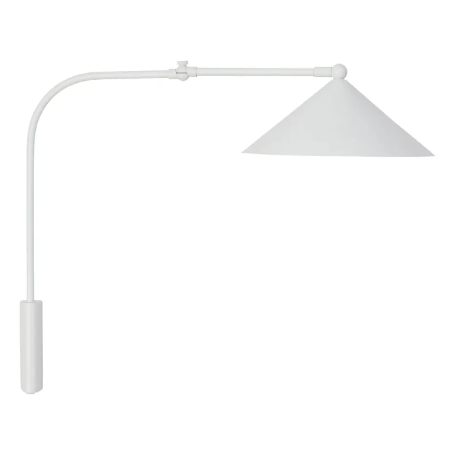 Kasa Wandleuchte von OYOY hat einen verstellbaren Arm und einen Lampenschirm, der nach Bedarf gekippt werden kann. Die Kasa Wandleuchte ist perfekt als Leselampe neben dem Sofa oder Bett.