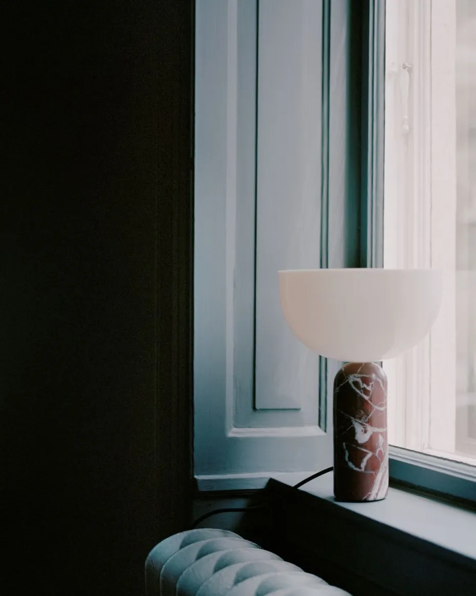 Die Kizu Tischleuchte in der Größe Small von New Works ist eine elegante Leuchte, bei der sowohl der Fuß, als auch der Schirm eine weiche Formensprache mit wenig Berührungspunkten haben, was den Eindruck erweckt, dass der Schirm auf dem Fuß balanciert. Der Leuchtenfuß aus dem exklusiven Naturmaterial Marmor hat ein zylinderförmiges Design, das oben abgerundet ist. Der kontrastierende einfarbige Leuchtenschirm aus Acryl ist hingegen schalenförmig und unten abgerundet. Zusammen bilden die beiden geometrischen Figuren ein spannendes Kunstwerk, das sowohl eingeschaltet, als auch ausgeschaltet toll aussieht. Der preisgekrönte norwegische Designer Lars Tornøe steht hinter der skulpturalen Kizu Tischleuchte, die ein weiches und angenehmes Licht in dem Raum abgibt, in dem Sie sie platzieren. Wählen Sie zwischen verschiedenen Marmorfarben, um diejenige zu finden, die am besten in Ihr Zuhause passt.