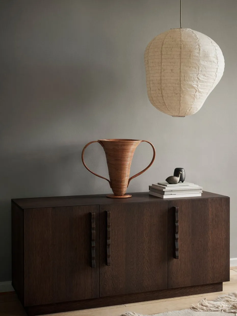 Der Kurbis Lampenschirm von Ferm Living ist aus dem charakteristisch reichen Washi-Papier, auch bekannt als Japanpapier, und rostfreiem Stahl gefertigt. Mit seiner organischen und asymmetrischen Form, inspiriert von der Kürbis- und Kürbisfamilie, bietet dieser Lampenschirm ein weiches und sanftes Licht, das jedem Raum Atmosphäre und Charme verleiht.