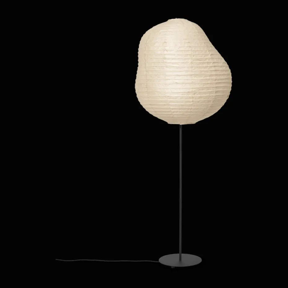 Die Kurbis Stehleuchte high von Ferm Living ist aus feinem Washipapier mit einem soliden Sockel aus pulverbeschichtetem schwarzen Metall gefertigt. Die organische und asymmetrische Silhouette der Lampe erzeugt ein weiches, angenehmes Licht und schafft eine warme Atmosphäre. Ideal, um eine Leseecke oder einen Lieblingssessel in einen entspannenden Rückzugsort mit sowohl Ästhetik als auch Funktionalität zu verwandeln.
