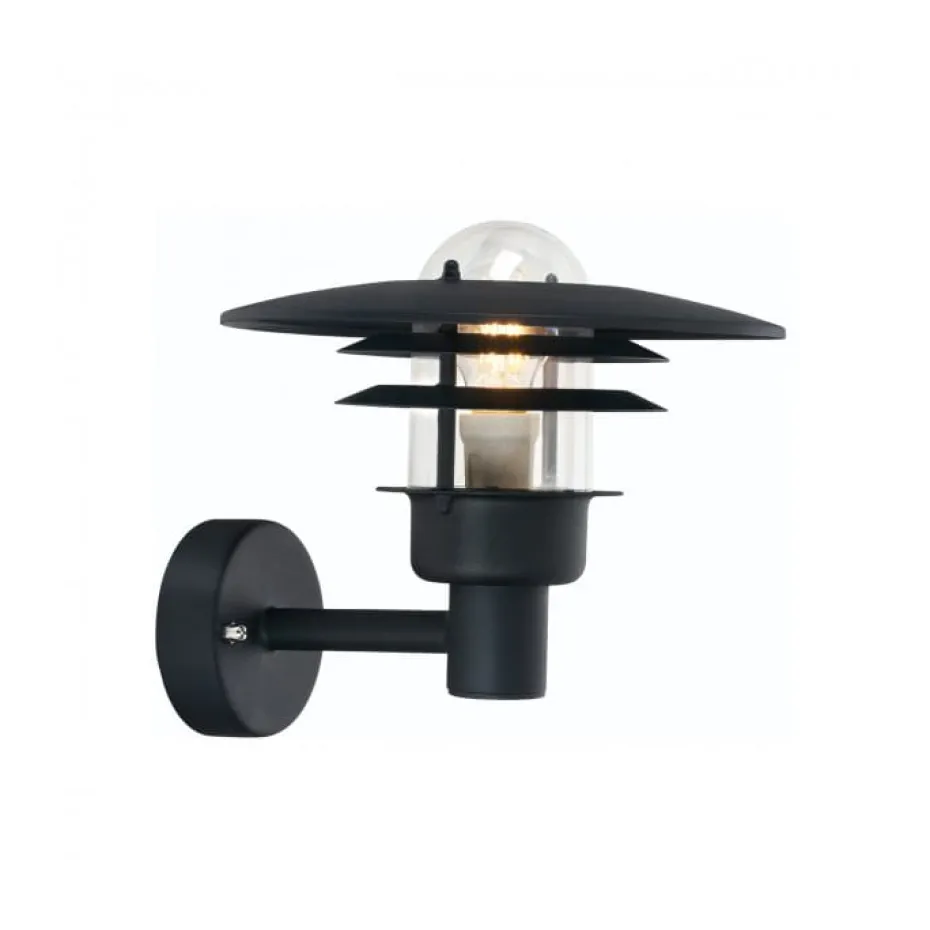 Wandleuchte in verzinkt oder schwarz. Larvik gibt ein symmetrisches und sehr gutes Licht ab. Die Lichtquelle ist hinter einer sehr langlebigen Polycarbonat-Kunststoffschale geschützt. Eckwinkel (Art. 153) kann als Zubehör bestellt werden.