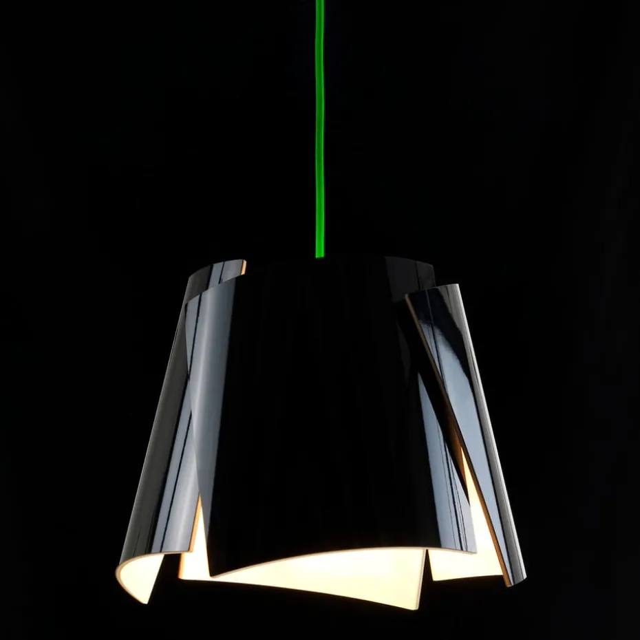 Die Leaf Pendelleuchte wurde von den beiden schwedischen Designern Staffan Lind und Marit Stigsdotter entworfen. Die einfachen, aber futuristisch wirkenden Formen des Lampenschirms lassen das Licht besonders weich im Raum fallen. Die vier Teile des Lampenschirms werden aus Hochdrucklaminat hergestellt, das außen schwarz, und innen in grün, rot oder türkis wählbar ist.