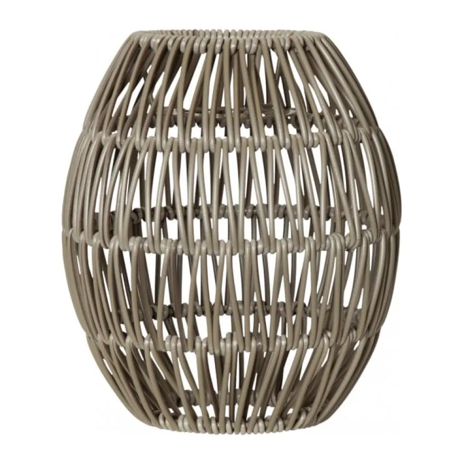 Graubeiger 18 cm hoher Lampenschirm aus Rattan für den Außenbereich. Kombinieren Sie sie mit unseren Pendelleuchten und Lichtquellen für den Außenbereich. Geeignet für Aufhängung mit E27-Sockel und Lichtquellen mit einem Durchmesser von weniger als 7,5 cm.