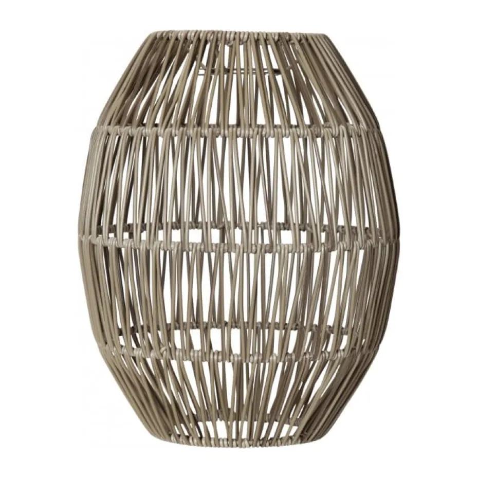 Grau-beiger 30 cm hoher Lampenschirm aus Rattan für den Außenbereich. Kombinieren Sie sie mit unseren Outdoor-Aufhängungen und Lichtquellen. Geeignet für Aufhängung mit E27-Sockel und Lichtquellen mit einem Durchmesser von weniger als 12 cm.