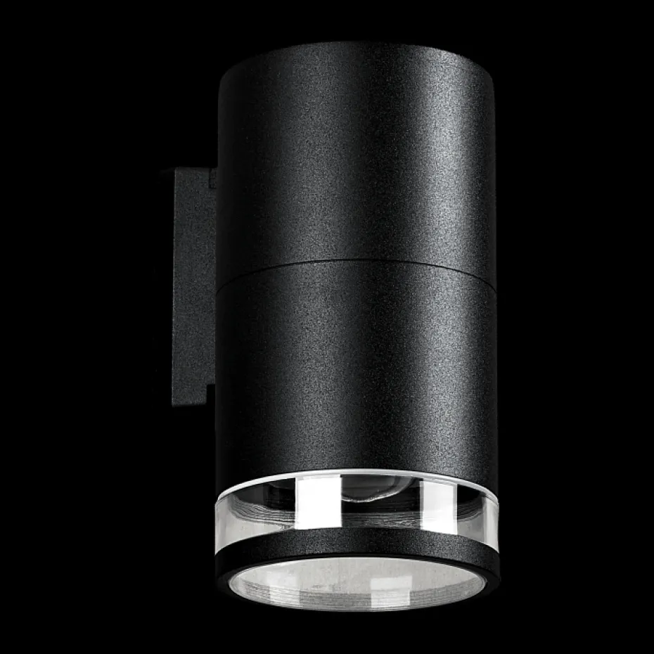 Wandleuchte mit E27-Fassung und nach unten gerichtetem Licht für Fassaden, Eingänge etc. Leuchtengehäuse aus Aluminium und mit Klarglas. Die Oberfläche ist korrosionsgeschützt und in Schwarz oder Aluminiumgrau pulverbeschichtet. Zur Wandmontage im Außen- oder Innenbereich. Geeignet für die Installation mit Rohrauslass oder für Aufputzkabel. Maximale Lichtquellengröße: Ø90x125mm inkl. Base