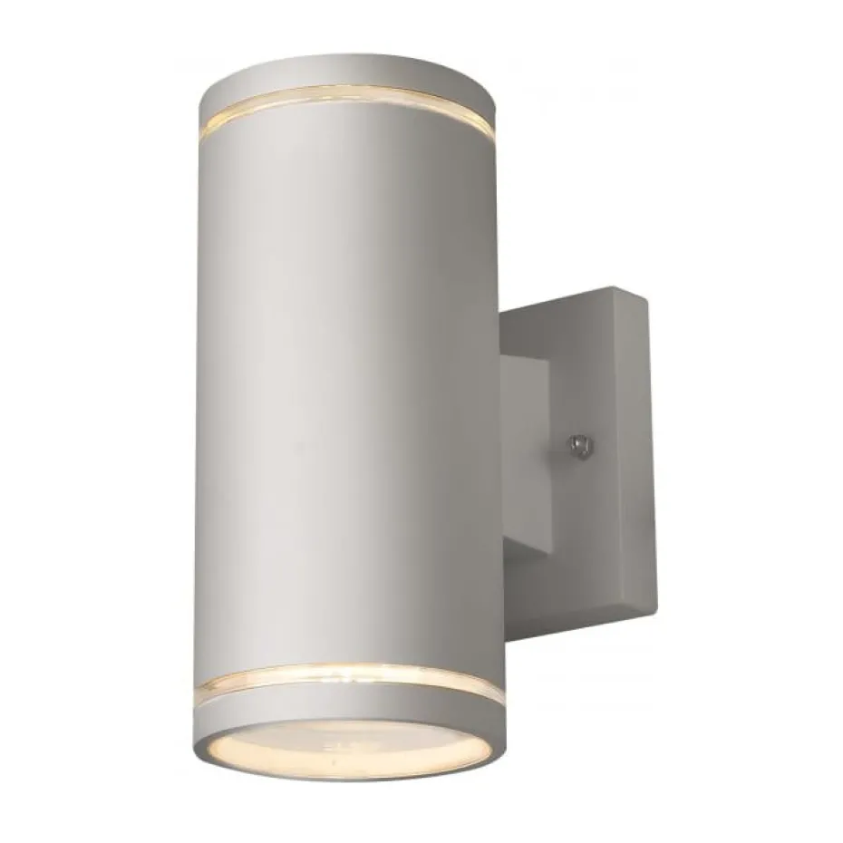 Wandleuchte aus Aluminiumguss mit korrosionsgeschützter Oberfläche mit Pulverbeschichtung. Ausgestattet mit GU10-Sockel. Down- und Uplight mit Gegenlichtblende aus Klarglas. Geeignet für die Montage mit Rohrauslass an der Wand im Freien oder im Innenbereich. Geeignet zur Beleuchtung an Fassaden, Eingängen etc.