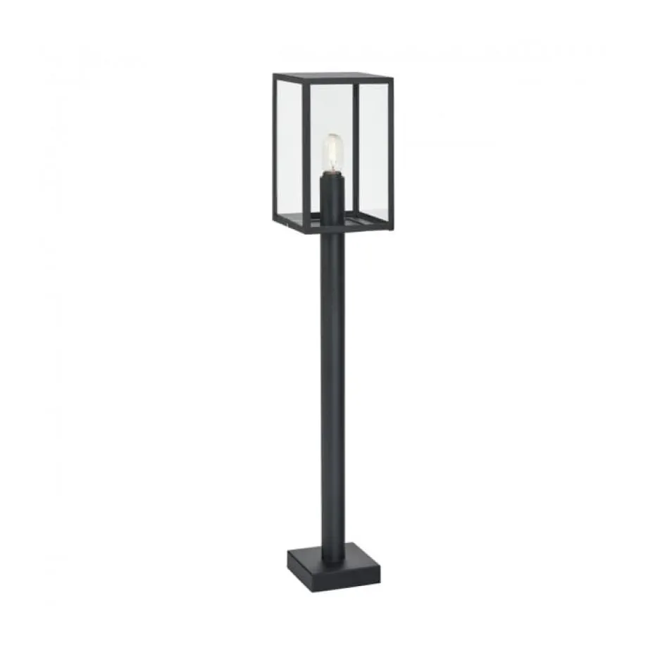 Zeitloser Retro-Leuchtpoller aus schwarz lackiertem Stahl. Sauberes Glas. Enthalten in einer Serie mit Teleskopstange, Decken-/Kettenlampen und Wandleuchte. Lichtquelle nicht enthalten.