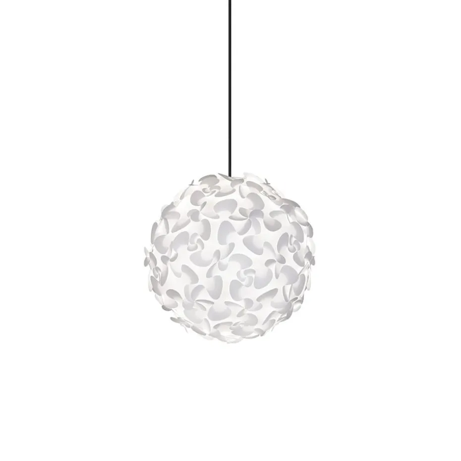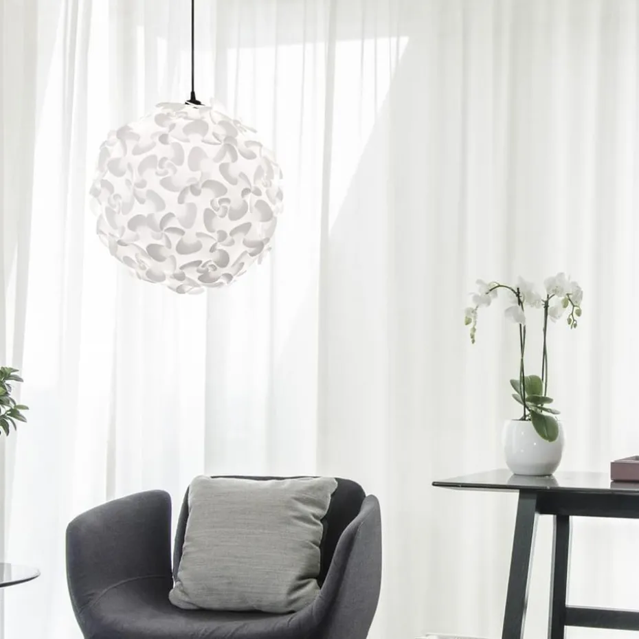 Lora wirkt wie ein leuchtender Schneeball, der bei näherem Betrachten aber doch eine schwungvolle, blütenformige Oberfläche hat. Design von Lorenzo Radaell für Umage / Vita Living aus Dänemark.