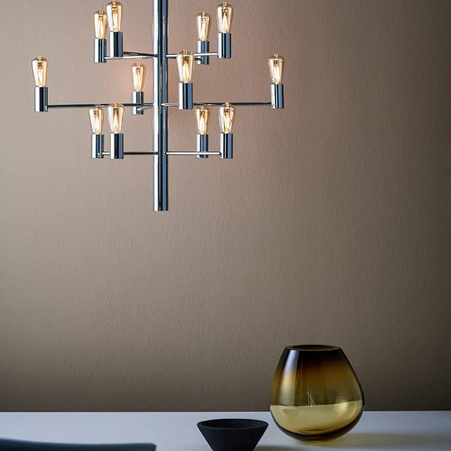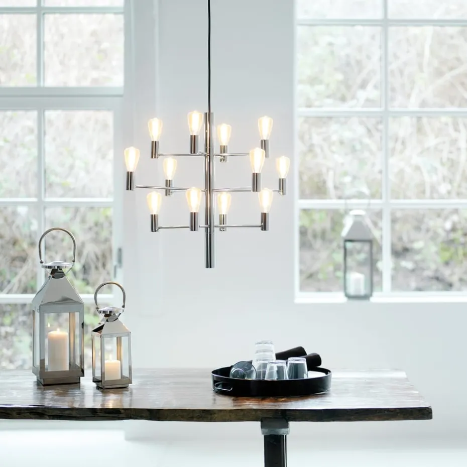 Der stilvolle Manola 12 Kronleuchter der dänischen Marke Herstal verfügt über 12 dimmbare Glühlampen, die ein stimmungsvolles Licht über dem Esstisch verbreiten. Ebenso eignet sich der Kronleuchter auch gut in einem Flur mit hoher Decke. Sie können zwischen verschiedenen Varianten wählen. Leuchtmittel sind im Lieferumfang enthalten.