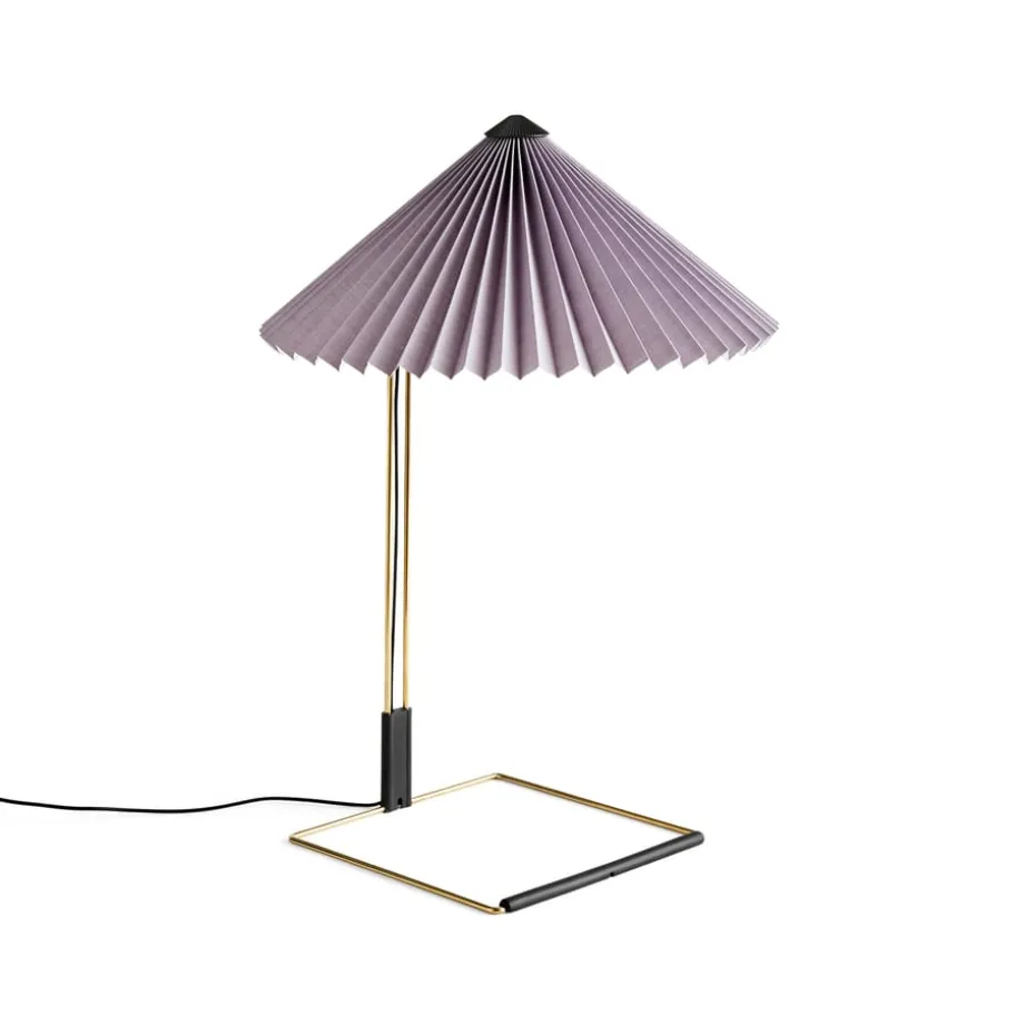 Die edle Matin table Tischleuchte Ø38cm der dänischen Marke Hay besteht aus einem gebogenen Stahlgestell in poliertem Messing-Finish mit mattschwarzen Details zusammen mit einem plissierten Baumwollschirm. Die Tischleuchte verfügt über eine integrierte LED-Beleuchtung, die für ein diffuses Downlight sorgt, das je nach Geschmack und Vorliebe gedimmt werden kann. Die Designerin Inga Sempé hat der Leuchte eine elegante, fast poetische Form gegeben, bei welcher der Messingrahmen wunderschön mit dem schlichten Leuchtenschirm interagiert. Die Tischleuchte Matin ist ebenso funktional wie dekorativ und passt wunderbar auf die Kommode im Flur oder den Nachttisch im Schlafzimmer.