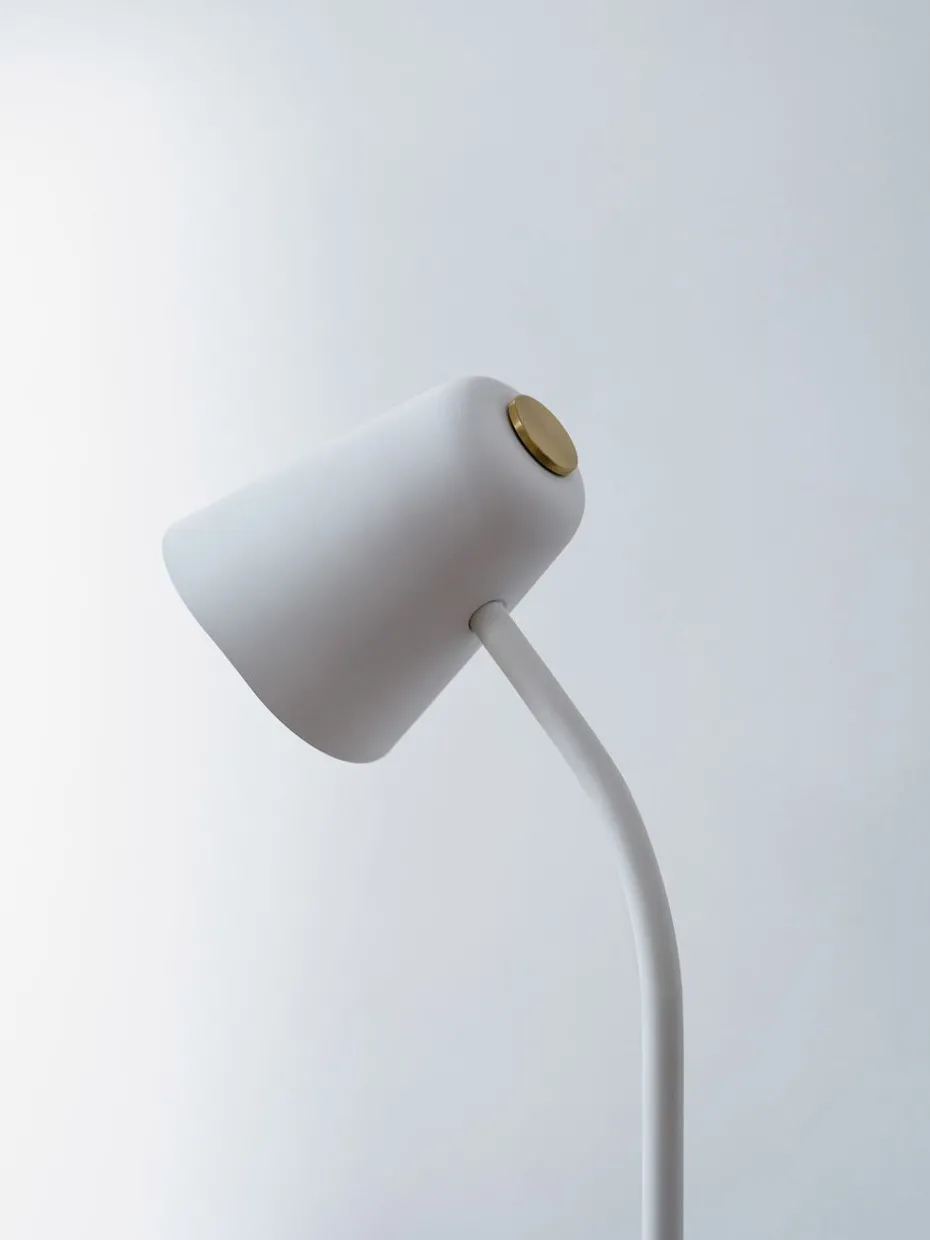 Die Me Dim Stehleuchte von Northern ist eine minimalistische Lampe mit einem klassischen Design, das sie perfekt neben dem Sofa oder dem Sessel macht. Die Stehleuchte verfügt über eine eingebaute Dimmfunktion, die über das runde Messingdetail am Lampenschirm gesteuert wird.