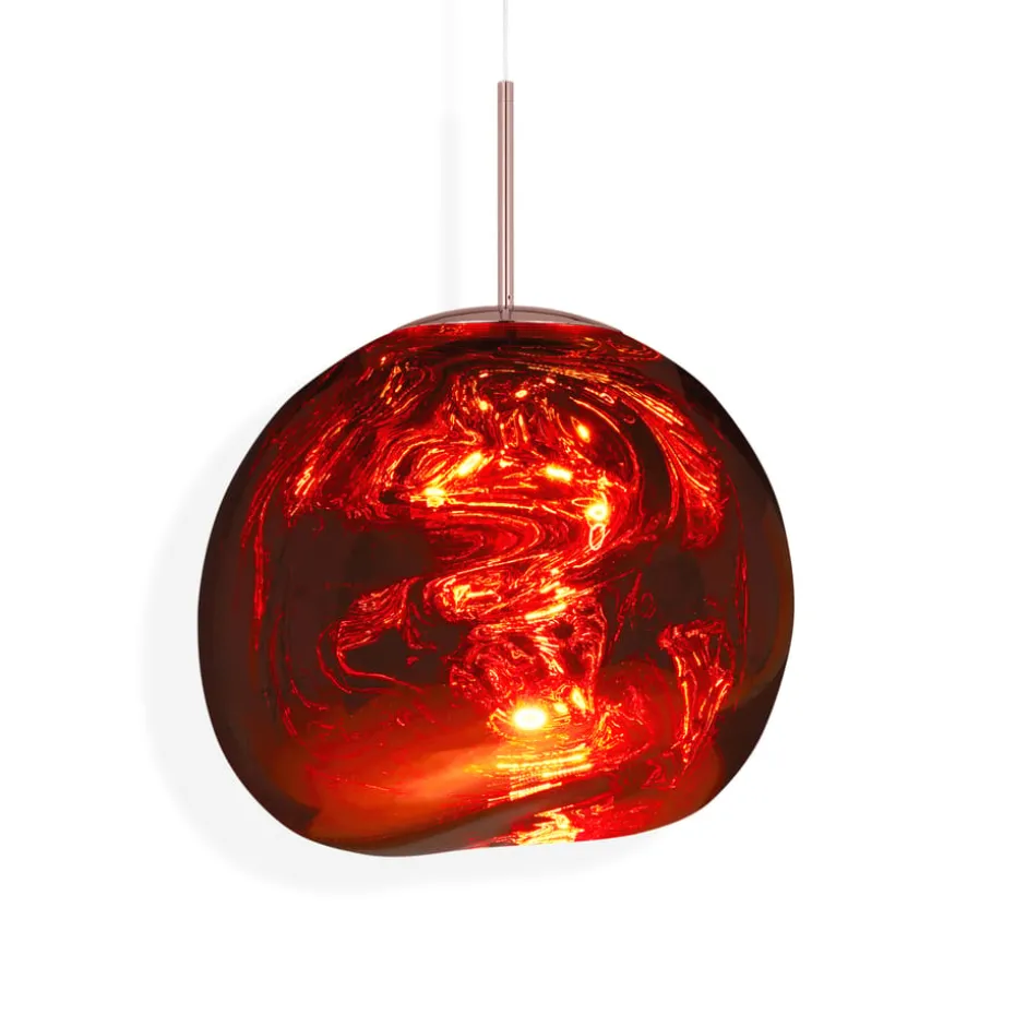 Die Melt Pendelleuchte LED ist eine extravagante Deckenleuchte der Marke Tom Dixon und wurde in Zusammenarbeit mit dem hervorstechenden Designkollektiv FRONT entworfen. Ist die Lampe ausgeschaltet, punktet sie mit einem spiegelblanken Finish und verwandelt sich in eingeschaltetem Zustand zu einem glühend schmelzenden Glas oder einem brennenden Meteoriten aus einer anderen Galaxie. Das Licht wird auf magische Weise durch die wellenartige Kugelform mit durchsichtigem Metallfinish reflektiert, das durch Vakuum-Metallisierung entsteht – ein Prozess, bei dem Metall verdunstet und damit ein besonders dünner Metallfilm im Inneren der Kugel entsteht. Kombinieren Sie die Lampe mit weiteren Deckenleuchten der gleichen Kollektion oder entdecken Sie die verschiedenen Farben des Surface-Modells, um eine persönliche Komposition für Ihr Zuhause zu erschaffen. Leuchtmittel sind nicht im Lieferumfang enthalten.