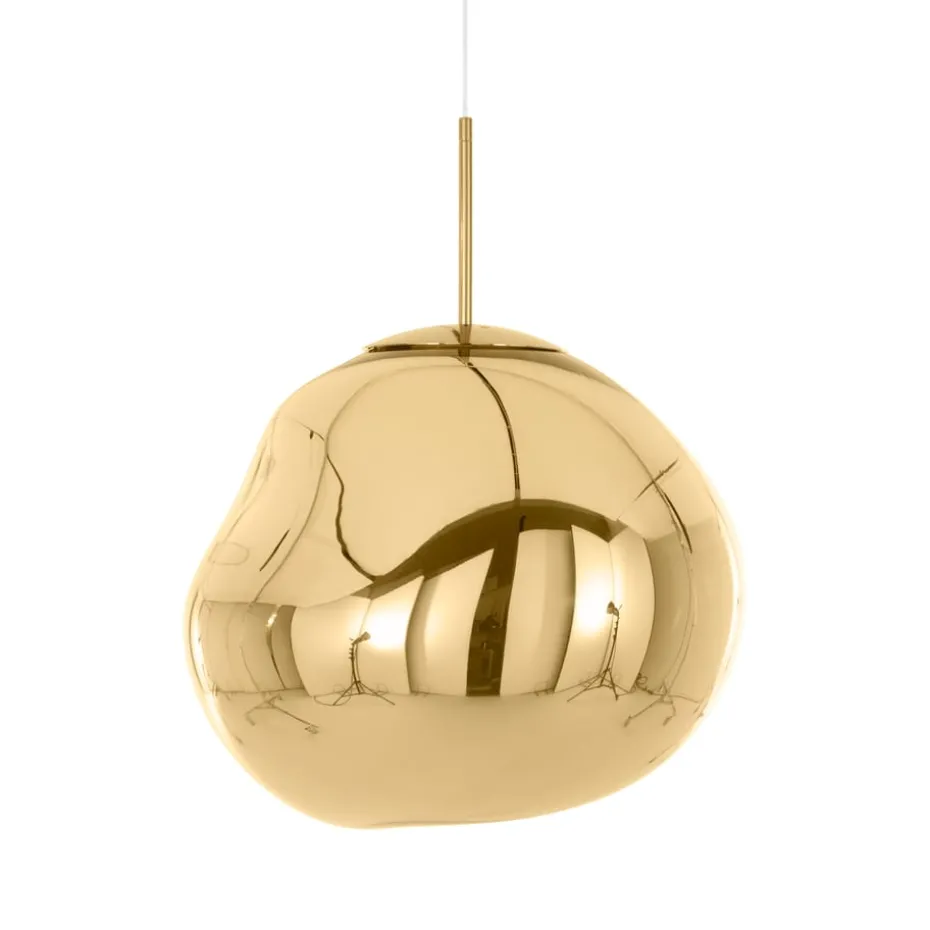 Die Melt Pendelleuchte LED ist eine extravagante Deckenleuchte der Marke Tom Dixon und wurde in Zusammenarbeit mit dem hervorstechenden Designkollektiv FRONT entworfen. Ist die Lampe ausgeschaltet, punktet sie mit einem spiegelblanken Finish und verwandelt sich in eingeschaltetem Zustand zu einem glühend schmelzenden Glas oder einem brennenden Meteoriten aus einer anderen Galaxie. Das Licht wird auf magische Weise durch die wellenartige Kugelform mit durchsichtigem Metallfinish reflektiert, das durch Vakuum-Metallisierung entsteht – ein Prozess, bei dem Metall verdunstet und damit ein besonders dünner Metallfilm im Inneren der Kugel entsteht. Kombinieren Sie die Lampe mit weiteren Deckenleuchten der gleichen Kollektion oder entdecken Sie die verschiedenen Farben des Surface-Modells, um eine persönliche Komposition für Ihr Zuhause zu erschaffen. Leuchtmittel sind nicht im Lieferumfang enthalten.
