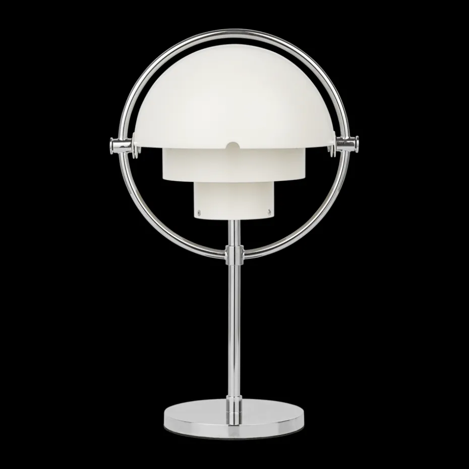 Die Multi-Lite portable Leuchte von Gubi ist eine kleinere Version der beliebten Tischleuchte mit dem gleichen Namen. Die einzigartige Konstruktion mit mehreren Schirmen, die nach Bedarf ausgerichtet werden können, bietet Ihnen eine flexible und tragbare Tischleuchte die vielseitig einsetzar ist. Um zu verhindern, dass man vom Licht geblendet wird, ist diese kleinere Version der Multi-Lite mit einem Blendschutz in den beiden obersten Schirmen konstruiert. Wenn die Leuchte voll aufgeladen ist, kann sie 6,5 Stunden bei voller Leistung leuchten. Es dauert 6 Stunden, um den Akku auf 100% und 3 Stunden, um 80% der Akkukapazität zu erreichen. Die Helligkeit kann in drei Stufen geregelt und mit einem Touchdimmer an der Seite des Lampenschirms gesteuert werden.