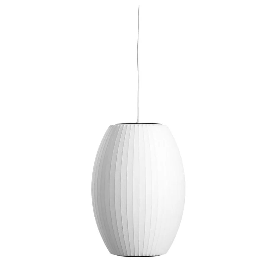 Die stilvolle Nelson Bubble Cigar Pendelleuchte S von Hay wurde von George Nelson entworfen und ist eine luftig leichte Pendelleuchte deren Form an eine Zigarre erinnert. Der amerikanische Designer George Nelson entwarf die schöne Pendelleuchte bereits 1947, nachdem er sich von einem Paar schwedischer Seiden-Pendelleuchten inspirieren ließ. Es stellte sich heraus, dass diese einen sehr komplizierten Herstellungsprozess hatten und Nelson wollte daher eine eigene Version entwickeln. Die Idee zum Design der Bubble Pendelleuchte entstand, nachdem er Schiffe sah, die unter einem dünnen, spinnennetzartigen Schutzgewebe gelagert wurden, das mit einem speziellen Spray über die Schiffe aufgetragen wurde. Innerhalb eines Tages hatte Nelson einen runden Metallrahmen hergestellt und Kontakt mit der Firma aufgenommen, die das Spray herstellte. Der Rest ist, wie man sagt, Geschichte. Das Ergebnis war die einzigartige Bubble Pendelleuchte, die durch ihren dünnen, gleichmäßigen Stoff einen sanften Glanz verbreitet. Die Pendelleuchte war ein echter Erfolg und ist seitdem eine der ikonischsten Leuchten von George Nelson. Die Bubble Pendelleuchte ist in verschiedenen Formen und Größen sowie als Wandleuchte erhältlich.