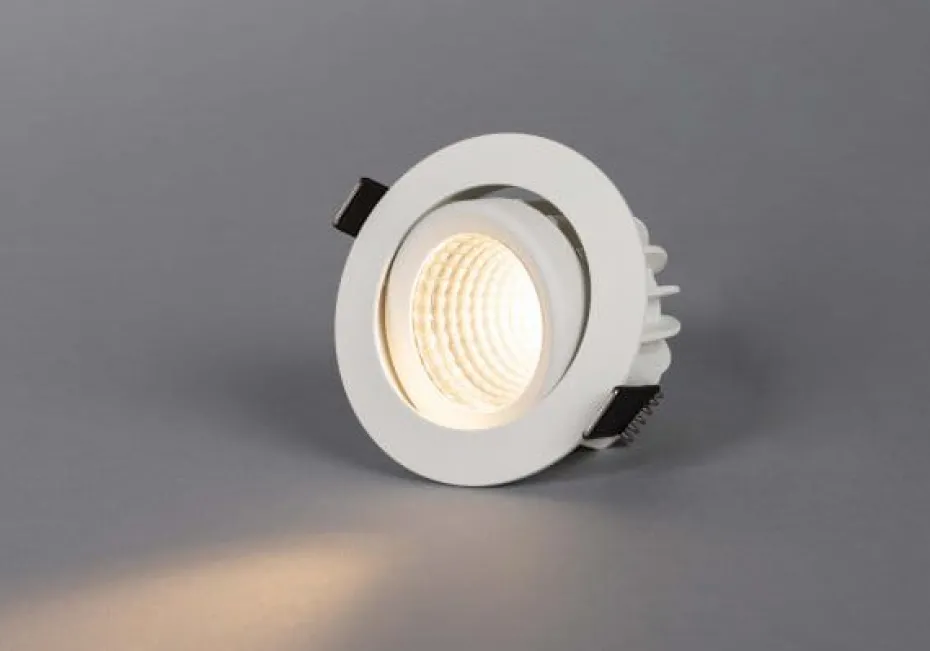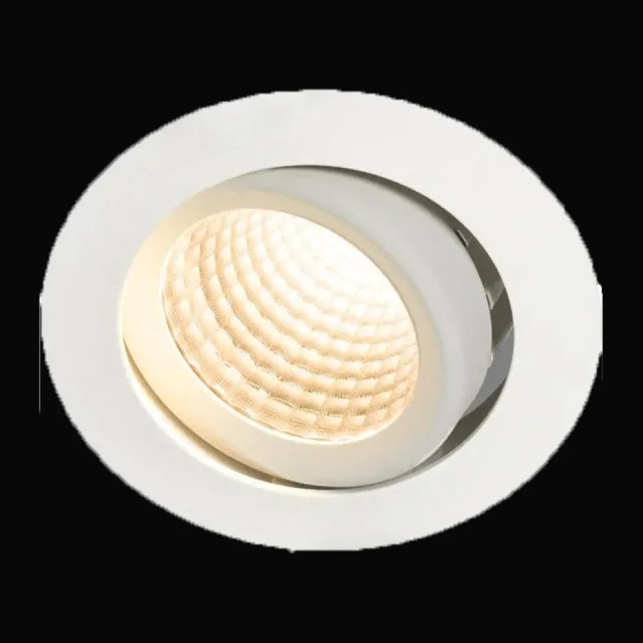 Leistungsstarke und schwenkbare Leuchte für hohe Deckenhöhen, Reflektortechnik mit 36° Streuung und hoher Lichtausbeute. Ausgeprägtes und gut gedimmtes Lichtbild mit sehr guter Farbwiedergabe, Ra > 90. Eine einfach zu installierende und flache Leuchte mit phasendimmbarem Vorschaltgerät und direktem 230-V-Anschluss. Schnellklemmen zur Weiterleitung und schraubenlose Zugentlastung. Wird komplett mit Antrieb für DALI- oder Phasendimmung geliefert.