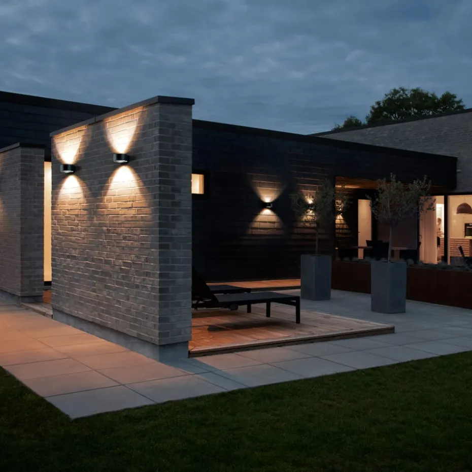 Die Orbit W2 Wandleuchte von Light-Point, entworfen von Ronni Gol und Nital Patel, bietet eine elegante Beleuchtungslösung mit ihrem zylinderförmigen Schirm. Sie verbreitet Licht nach oben und unten und ist IP54-klassifiziert, was sie ideal für den Außenbereich macht. Erhältlich in drei Farbalternativen: Schwarz, Weiß und Roségold, um sich Ihrer Umgebung anzupassen.