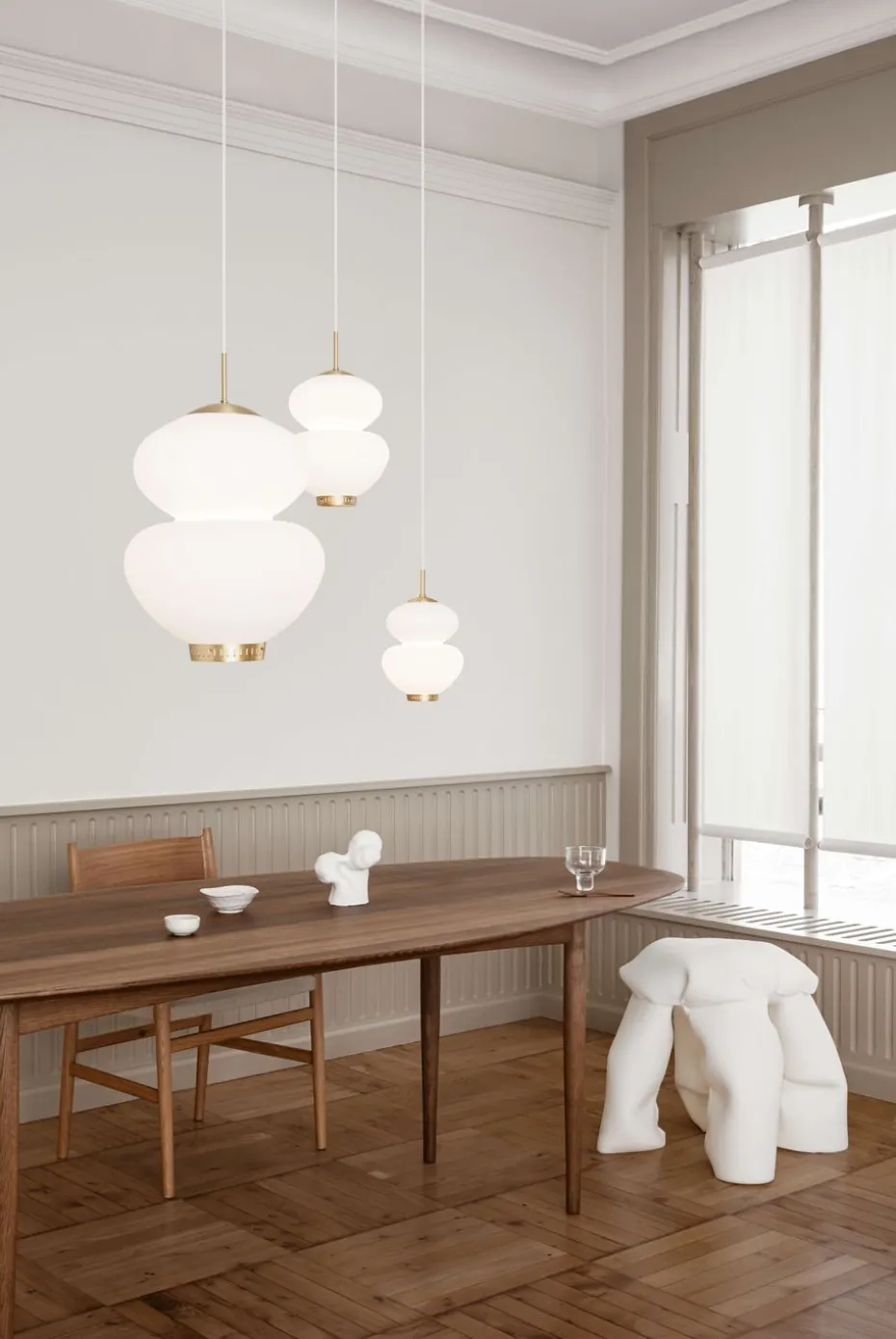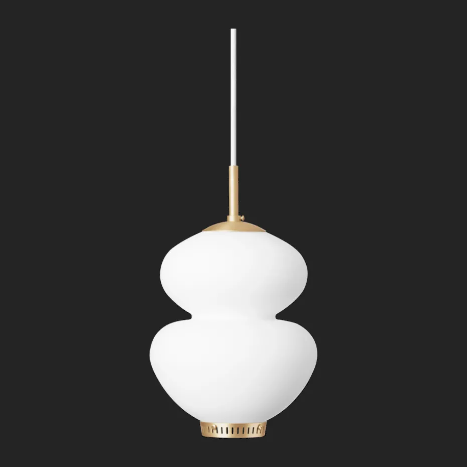 Die Peanut 175 Pendelleuchte ist eine klassische Lampe aus der Mitte des 20. Jahrhunderts, voller Charakter, designt von Bent Karlby im Jahr 1946. Der attraktive, geschwungene Schirm ist aus mundgeblasenem opalisiertem Glas gefertigt und wird durch eine obere und untere Messingkappe ergänzt. Die Peanut 175 spendet ein weiches und angenehmes Licht, wo immer Sie sie aufhängen.