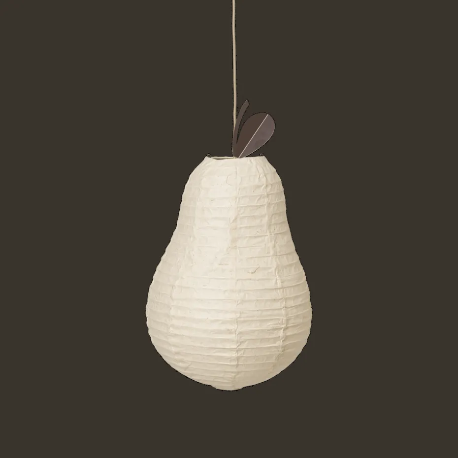Der Pear Lampenschirm von Ferm Living ist aus reich strukturiertem Washi-Papier gefertigt und spendet ein weiches, diffuses Licht, das eine gemütliche Atmosphäre schafft. Ein markantes Metallblatt fügt Realismus und Charme hinzu. Perfekt zum Lesen, Spielen oder als Nachtlicht, ist dieser bezaubernde Lampenschirm eine Freude für sowohl Kinder als auch Eltern.