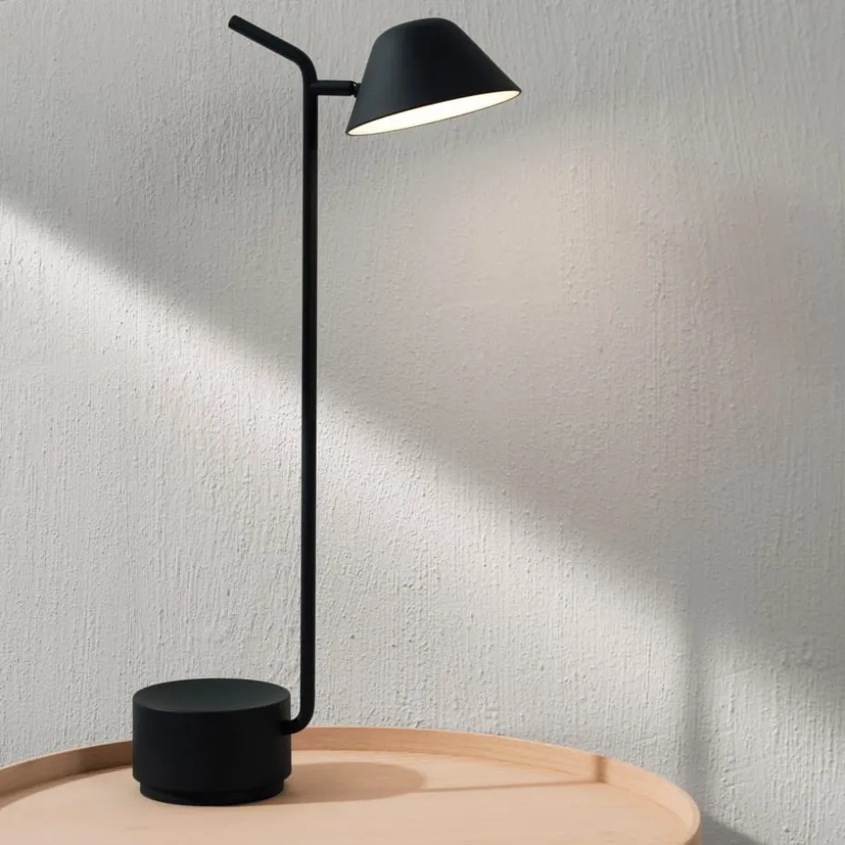 Die Peek Tischleuchte stammt von der dänischen Marke Audo Copenhagen und besticht durch ihr minimalistisches und zugleich verspieltes Design, welches von Jonas Wagell entworfen wurde. Der kleine Griff am oberen Teil der Leuchte fungiert als Dimm-Schalter und der Leuchtenfuß hat eine leichte Vertiefung die wunderbar zur Aufbewahrung von kleineren Gegenständen verwendet werden kann.