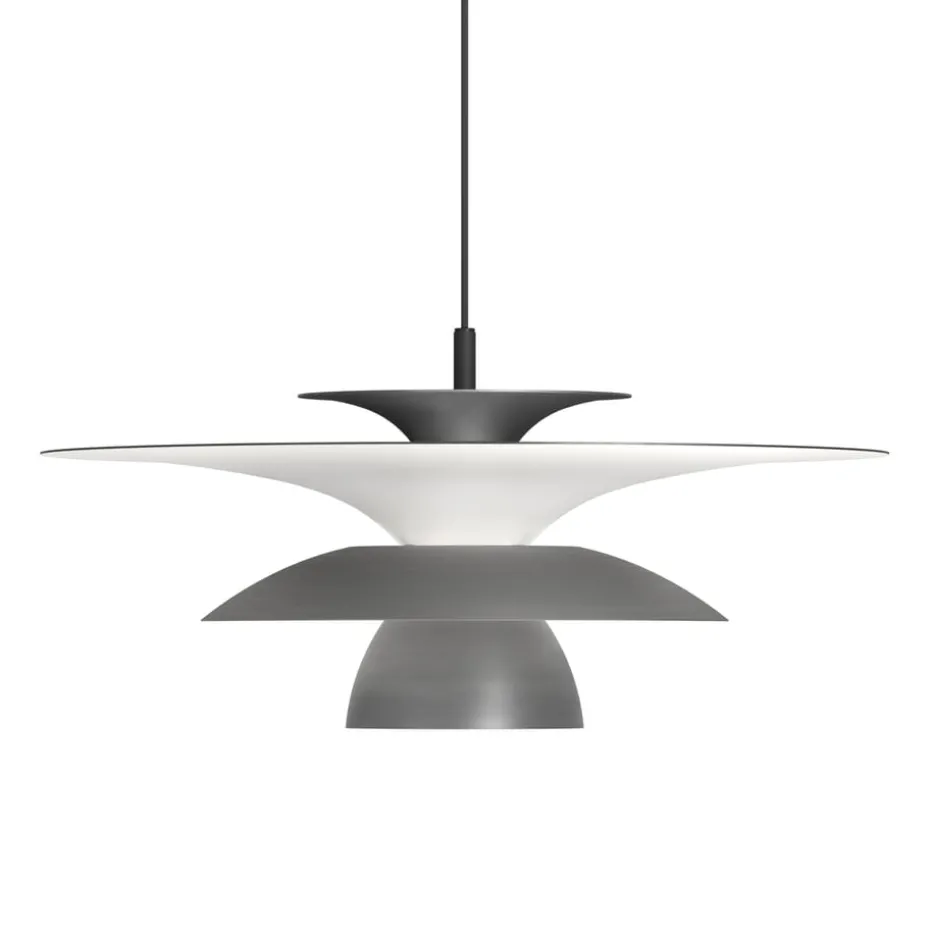 Die Picasso Pendelleuchte Ø50 cm wurde von Joakim Fihn entworfen und hat ein klassisches Design, das gleichzeitig einige moderne Elemente bietet. Die schön gestaltete Lampe besteht aus mehreren Schirmen, die helfen, das Licht im Raum zu verteilen, ohne dass man von der Lichtquelle selbst geblendet wird. Belid stellt seine Lampen in eigener Fabrik in Varberg, Schweden her, was für gute Qualität bürgt. Das auffällige Aussehen der Lampe wird sie zum Mittelpunkt machen, egal in welchem Raum sie hängt.