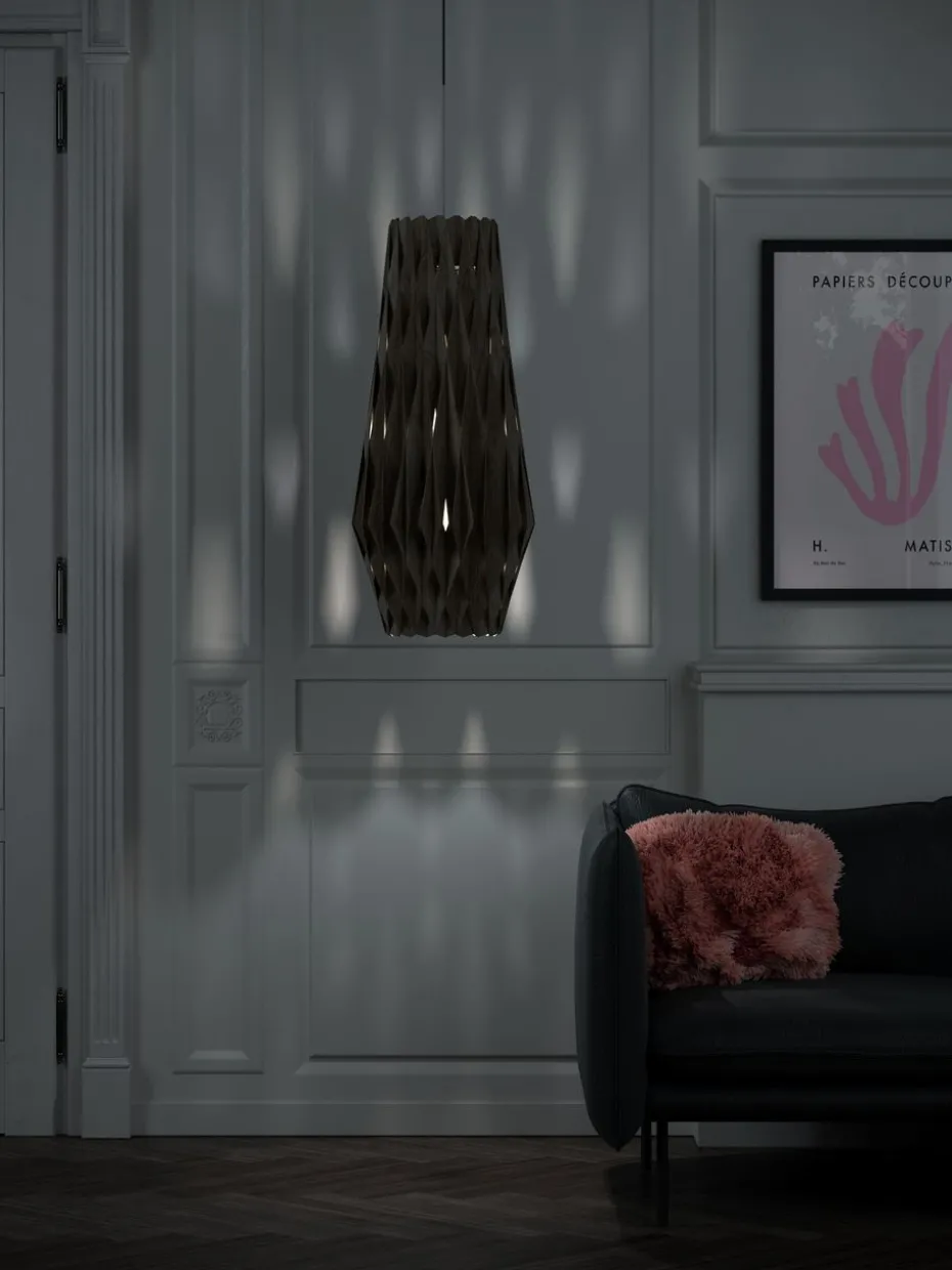 Die Pilke Signature Pendelleuchte 30/70 cm ist eine spektakuläre Beleuchtungslösung aus der renommierten Pilke Signature-Serie, entworfen von dem talentierten Designer Tuukka Halonen. Sorgfältig und präzise in Finnland aus hochwertigem Birkenholzfurnier gefertigt, ist diese Pendelleuchte ein Kunstwerk für sich. Mit ihren einzigartigen und organischen Mustern erzeugt die Pilke Signature Pendelleuchte einen faszinierenden Lichteffekt im Raum und schafft eine warme und einladende Atmosphäre. Ihr innovatives Design und die Materialauswahl machen sie zu einer beeindruckenden und einzigartigen Beleuchtungslösung zur Förderung der Raumgestaltung.