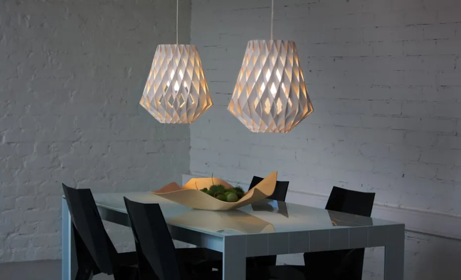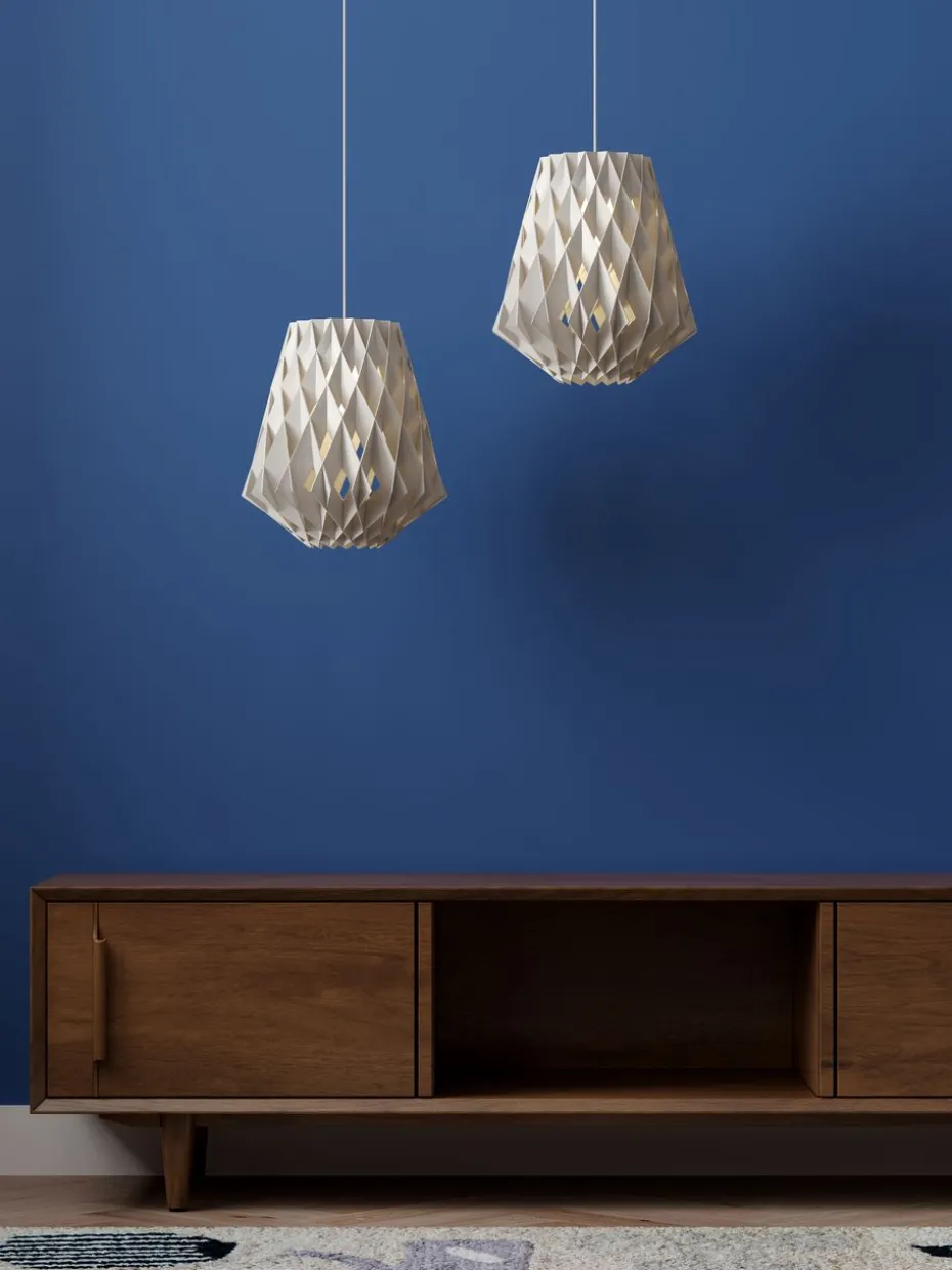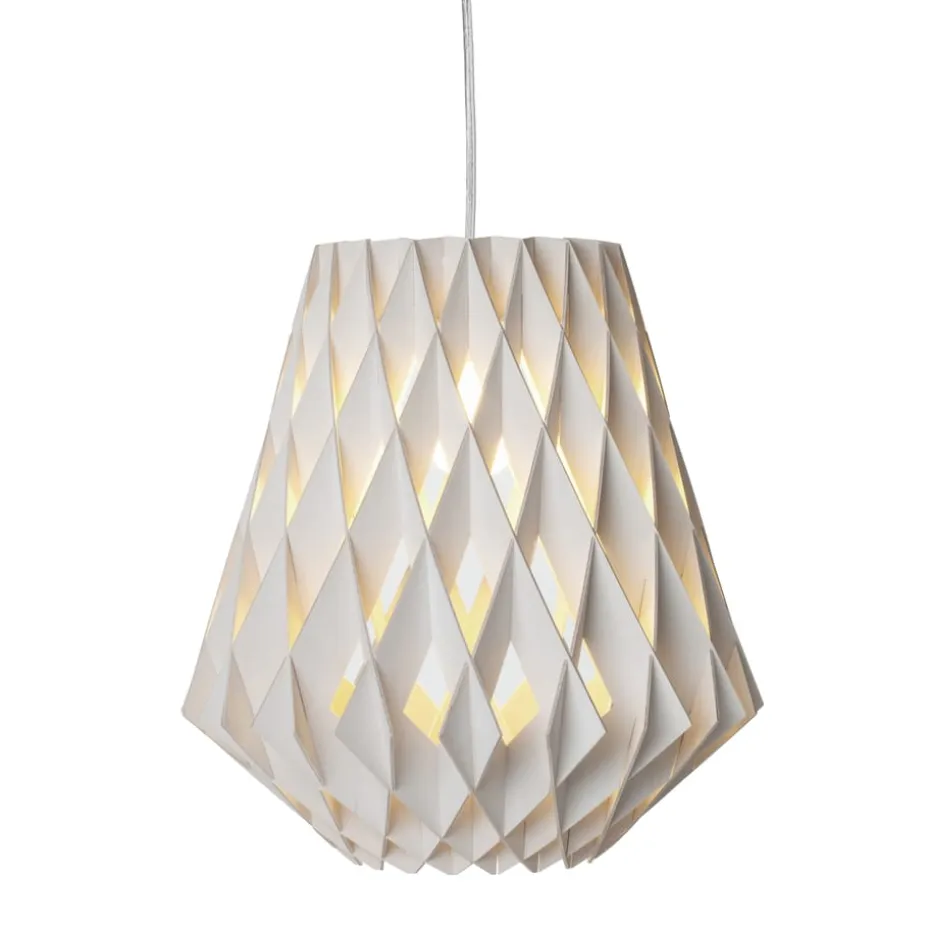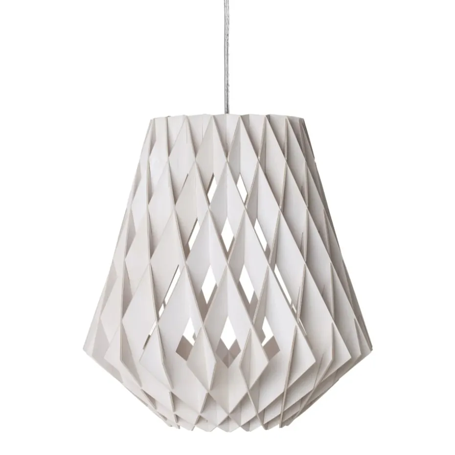 Die Pilke Signature Pendelleuchte Ø36cm von Pilke ist eine handgefertigte Deckenleuchte aus Birke, hergestellt in Finnland. Die schöne Form der Lampe erinnert an einen Kegel mit einem diamantähnlichen Muster und das Design vermittelt einen leichten und luftigen Ausdruck. Der Lampenschirm der Pendelleuchte wurde komplett ohne Schrauben oder Klebstoff zusammengefügt, was ihr eine einheitliche Form verleiht, die von allen Seiten schön anzusehen ist.