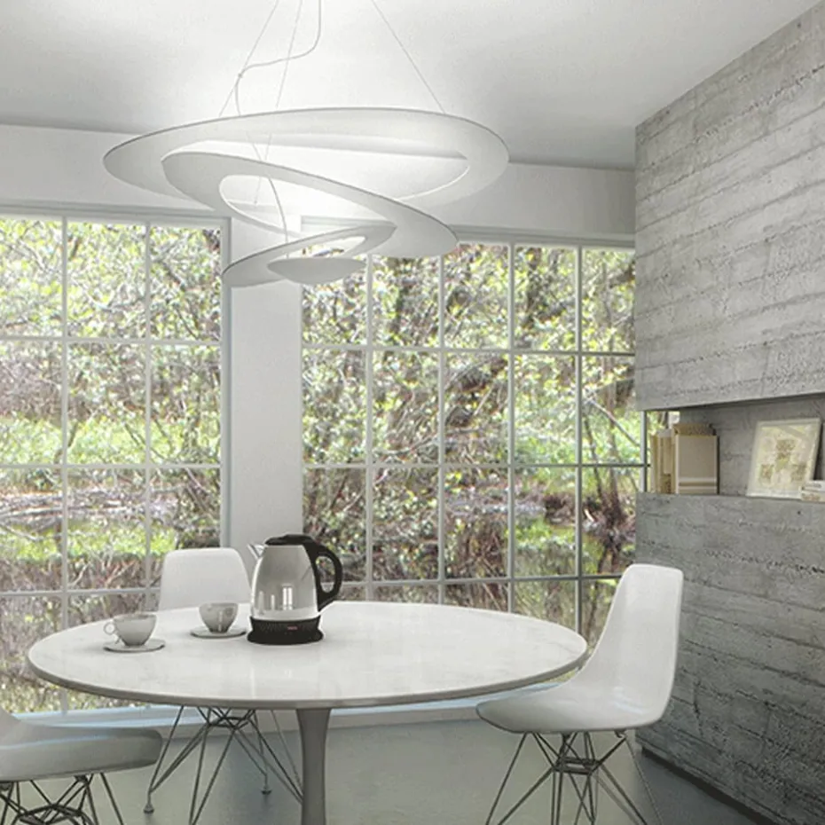 Die Pirce Pendelleuchte von Artemide vereint Eleganz und Innovation. Gefertigt aus lackiertem Aluminium, wird sie von einer dünnen Scheibe verziert, die flatternde Spiralen bildet. Diese Spiralen erzeugen faszinierende Lichteffekte, die die Atmosphäre im Raum bereichern. Perfekt für diejenigen, die eine einzigartige Lichtquelle suchen.