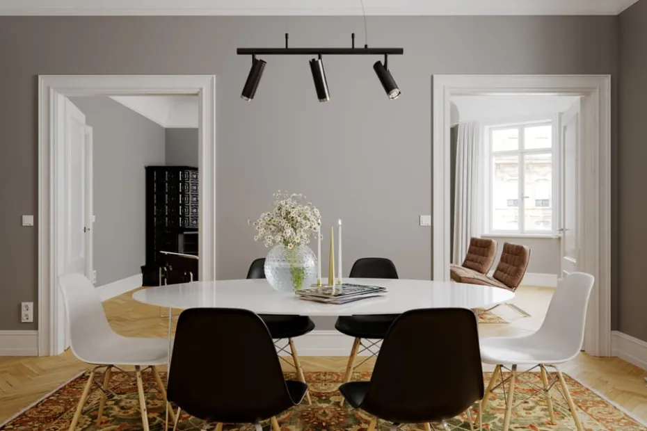 Die Puls Bar Deckenleuchte 80 cm von By Rydéns. Entdecken Sie die Flexibilität mit drei richtbaren Spotlights auf einer eleganten Schiene, ideal für die Anpassung des Lichts genau dort, wo Sie es benötigen. Die Dekorationsringe an den Spotlights sind austauschbar für eine persönliche Note. Perfekt, um die richtige Atmosphäre in Ihrem Zuhause zu schaffen.